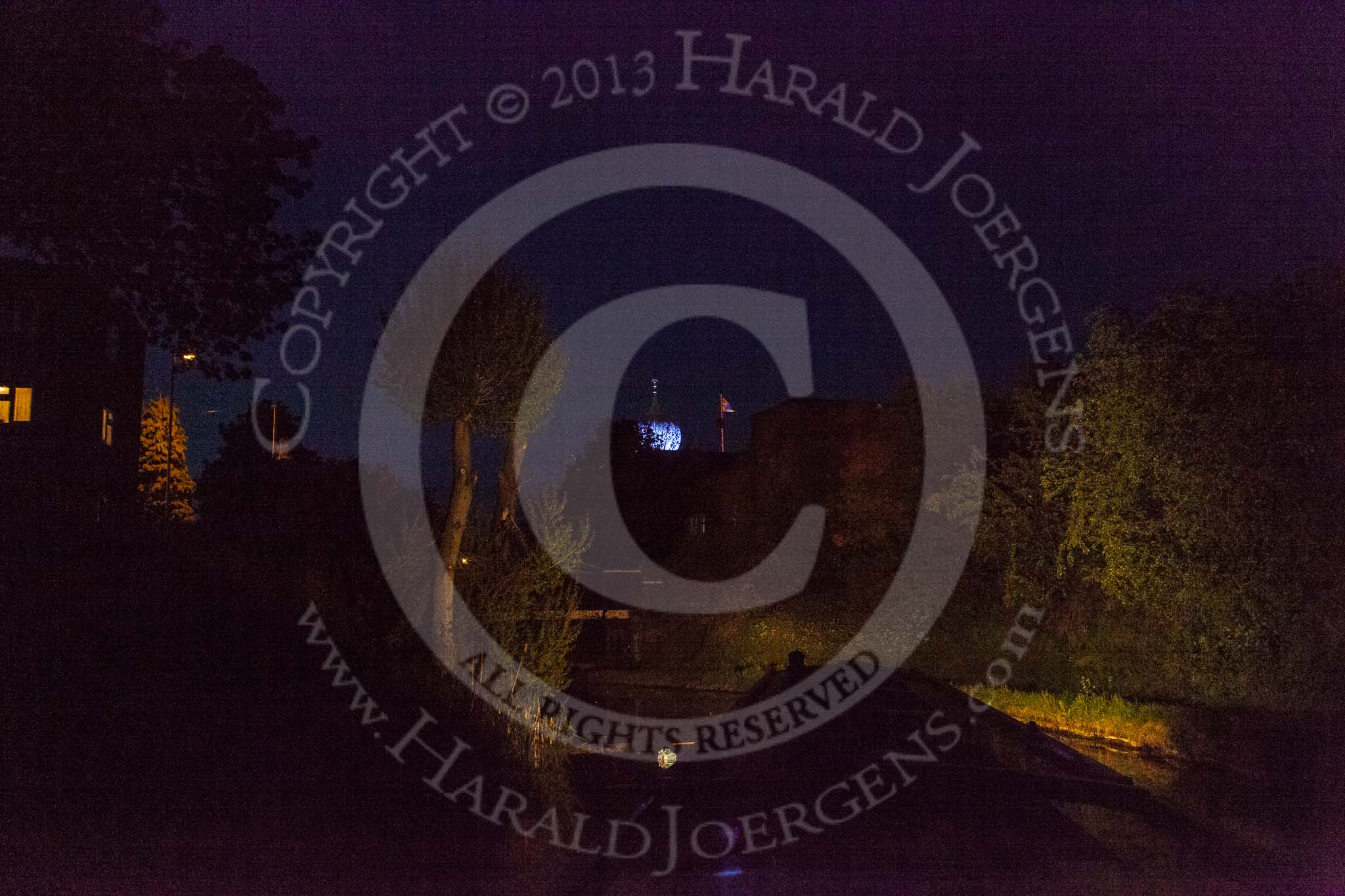 BCN Marathon Challenge 2013: NB "Folinious Mongoose", in fading daylight on the Walsall Canal at Darlaston, at Woodwards Bridge..