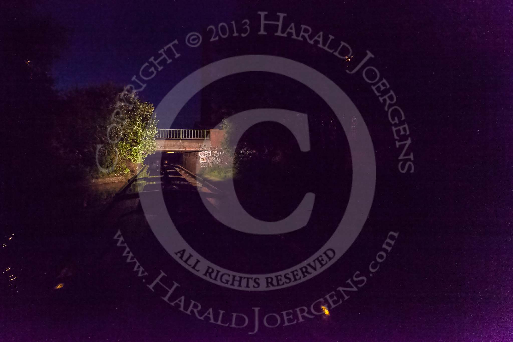 BCN Marathon Challenge 2013: NB "Folinious Mongoose", in fading daylight on the Walsall Canal Bridgeman Street Bridge, close to Walsall Town Wharf..