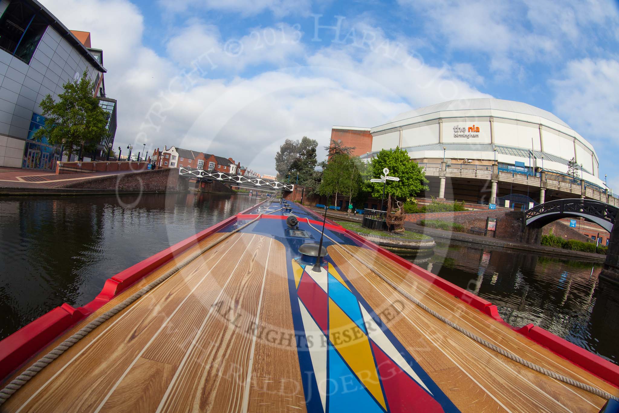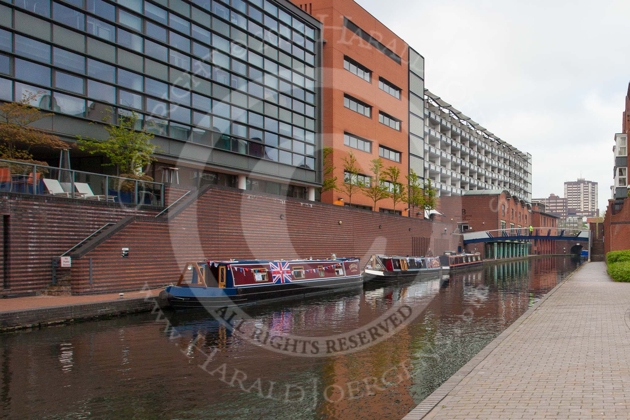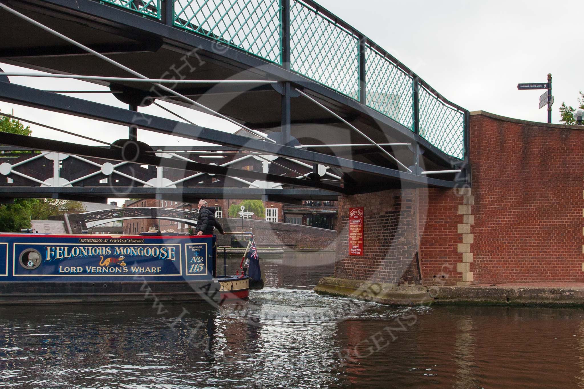 BCN Marathon Challenge 2013: NB "Felonious Mongoose", at Old Street Junction in the centre of Birmingham, minutes before the start of the BCN Marathon Challenge. On the right the NIA Birmingham, the National Indoor Arena.. Birmingham Canal Navigation, United Kingdom, on 25 May 2013 at 07:55, image #26