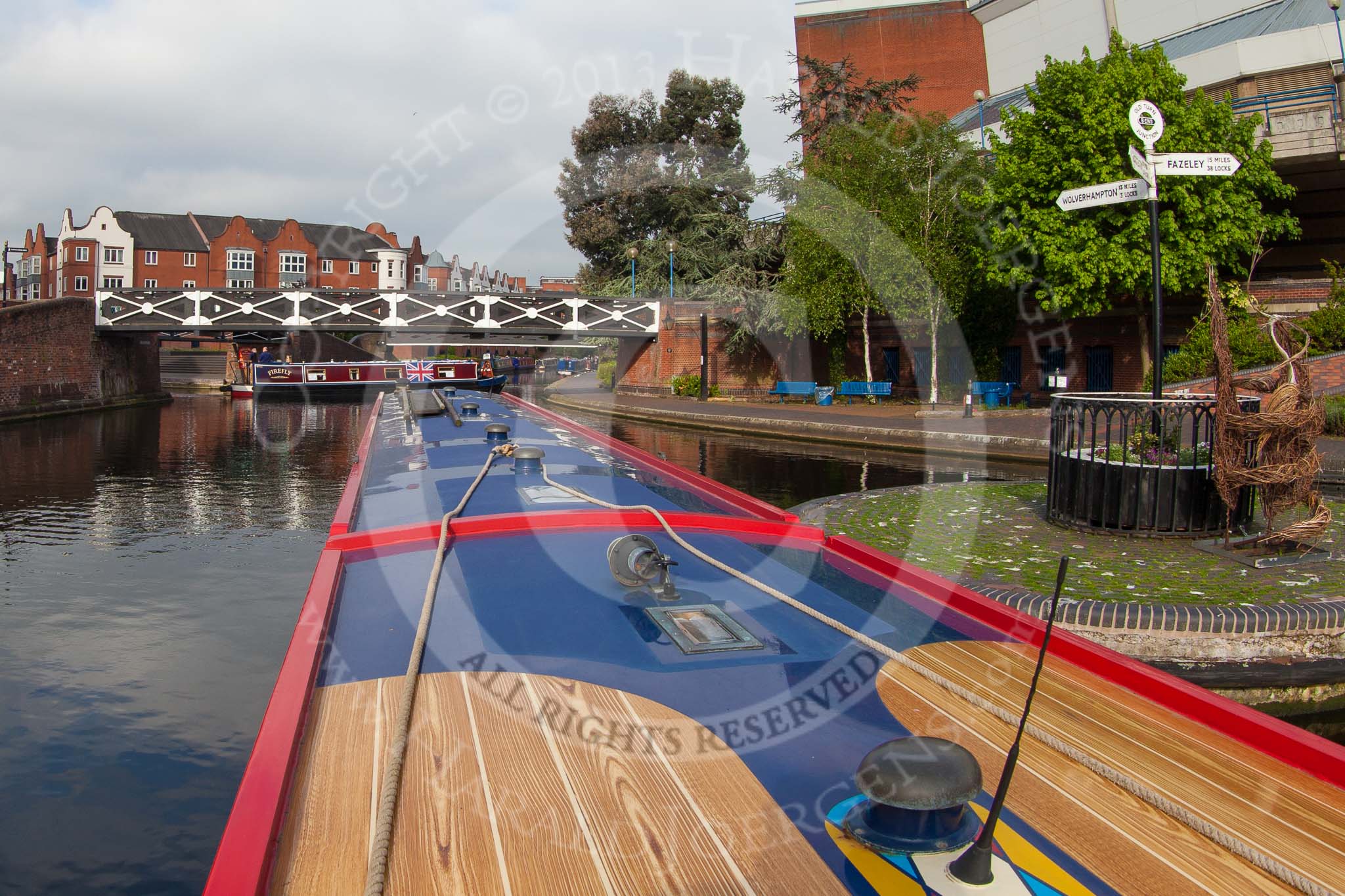 BCN Marathon Challenge 2013: NB "Firefly" turning, in front of NB "Felonious Mongoose", from Oozells Street Loop onto the Main Line at Old Turn Junction, minutes before the start of the BCN Marathon Challenge.. Birmingham Canal Navigation, United Kingdom, on 25 May 2013 at 07:56, image #27