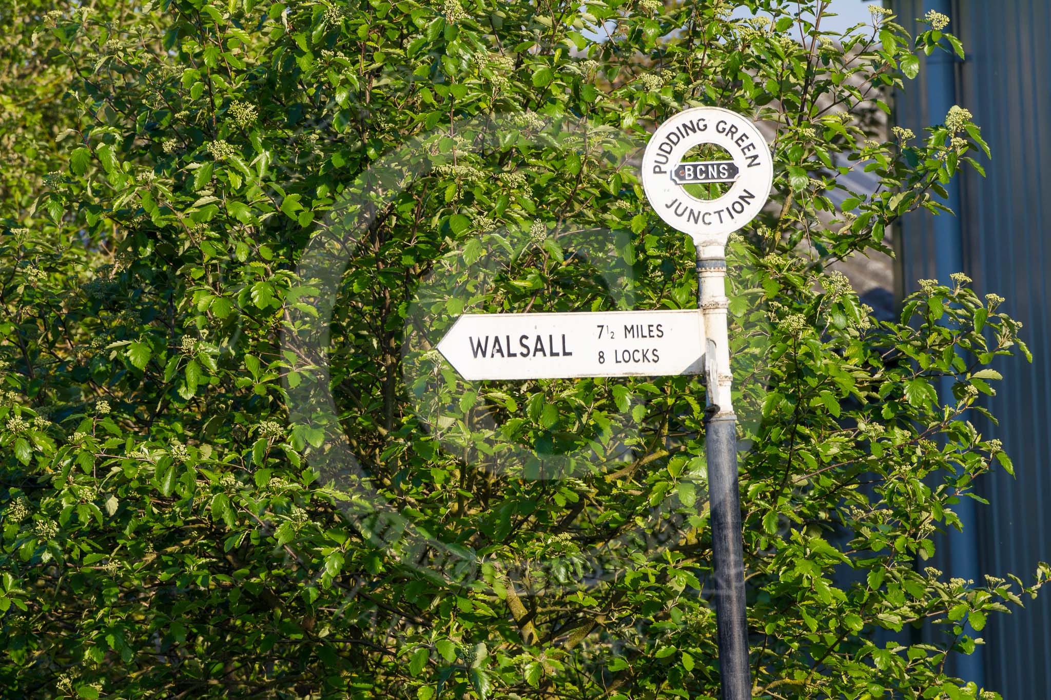 BCN Marathon Challenge 2013: BCNS signpost at Pudding Green Junction: "Walsall 7 1/2 miles 8 locks".. Birmingham Canal Navigation, United Kingdom, on 25 May 2013 at 18:55, image #300