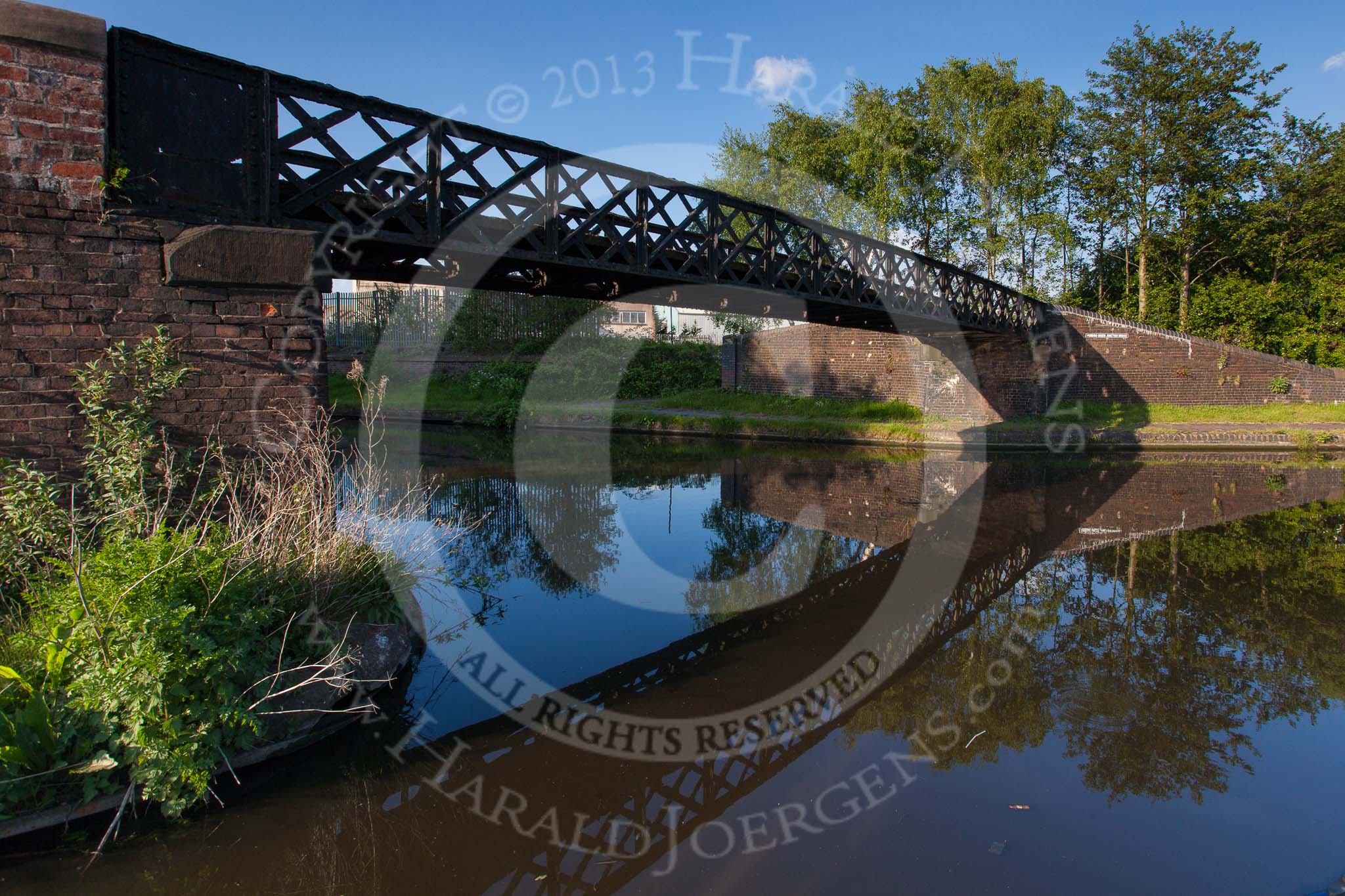 BCN Marathon Challenge 2013: Factory bridge on the Walsall Canal between Darlaston Road Bridge and Heathfield Bridge, the canal basin served lime- and brick works in the past.. Birmingham Canal Navigation, United Kingdom, on 25 May 2013 at 21:08, image #313