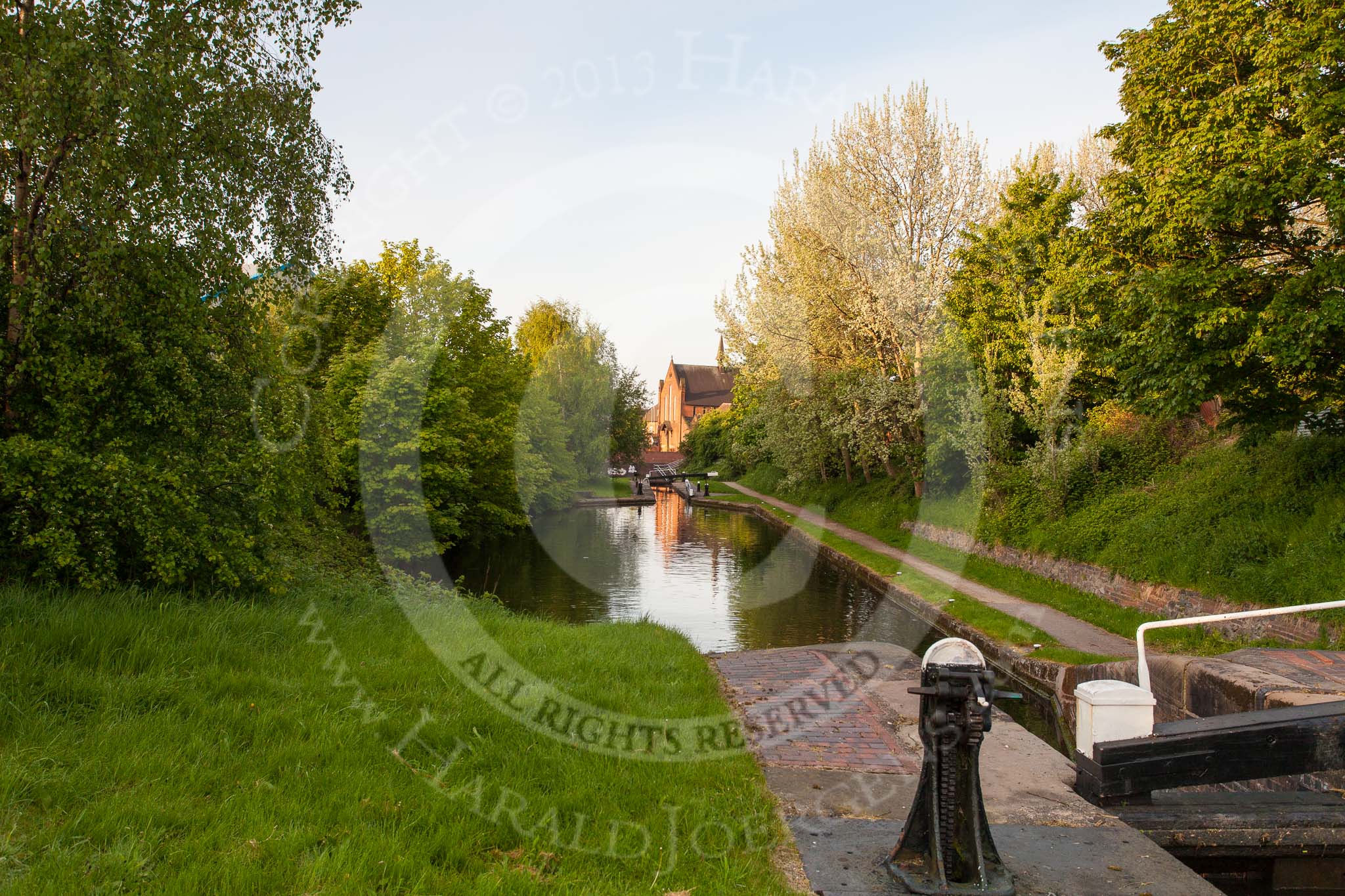 BCN Marathon Challenge 2013: St. Andrews Church, Walsall, seen from Walsall No. 3 Lock on the Walsall Branch Canal.. Birmingham Canal Navigation, United Kingdom, on 26 May 2013 at 05:59, image #347