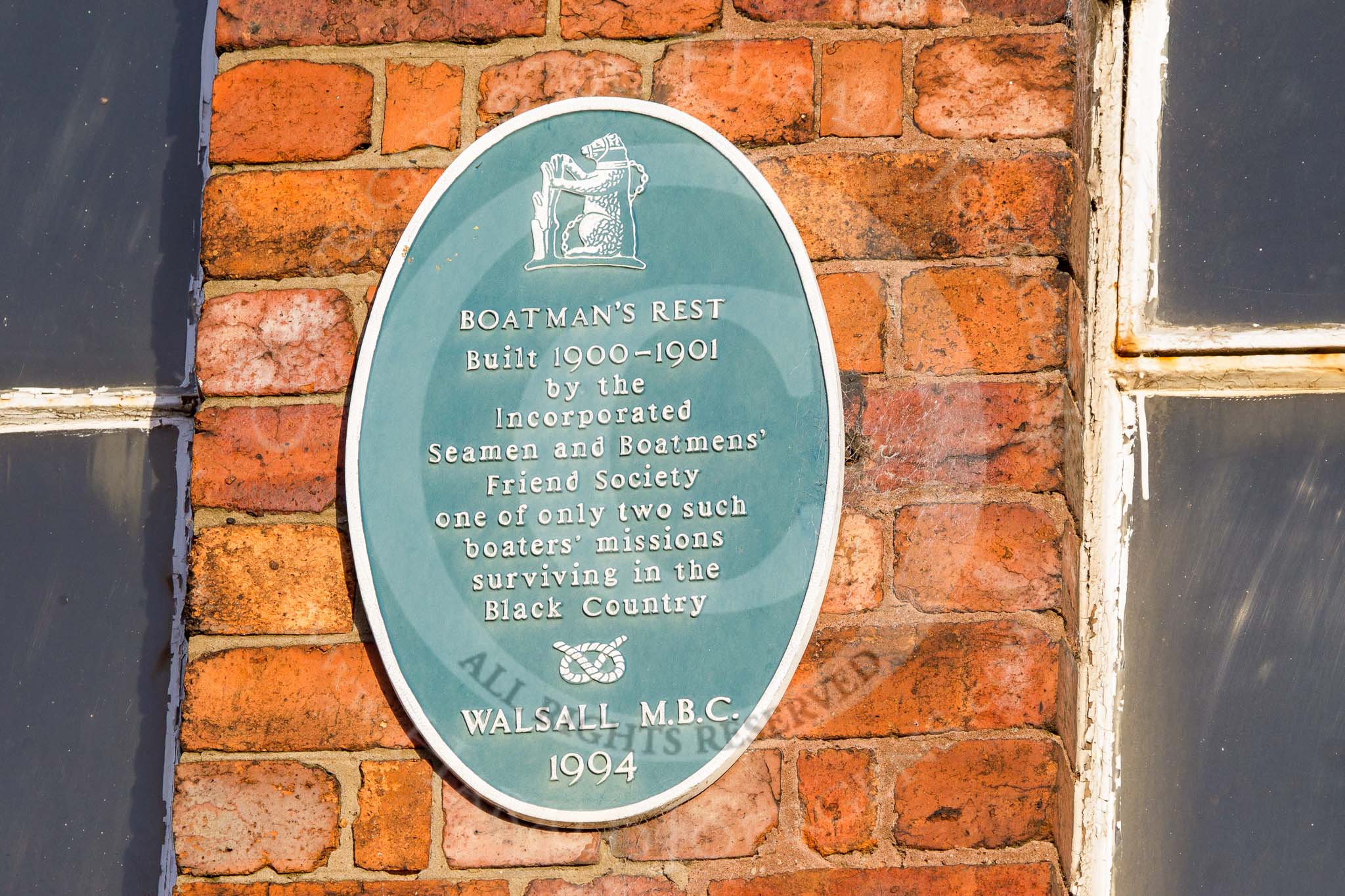BCN Marathon Challenge 2013: Plaque at the "Boatman's Rest" building: "Boatman's Rest, built 1900-1901 by the Incorporated Seamen and Boatmens' Friend Society one of only two such boter's missions surviving in the Black Country. Walsall M.B.C. 1994".. Birmingham Canal Navigation, United Kingdom, on 26 May 2013 at 06:17, image #352