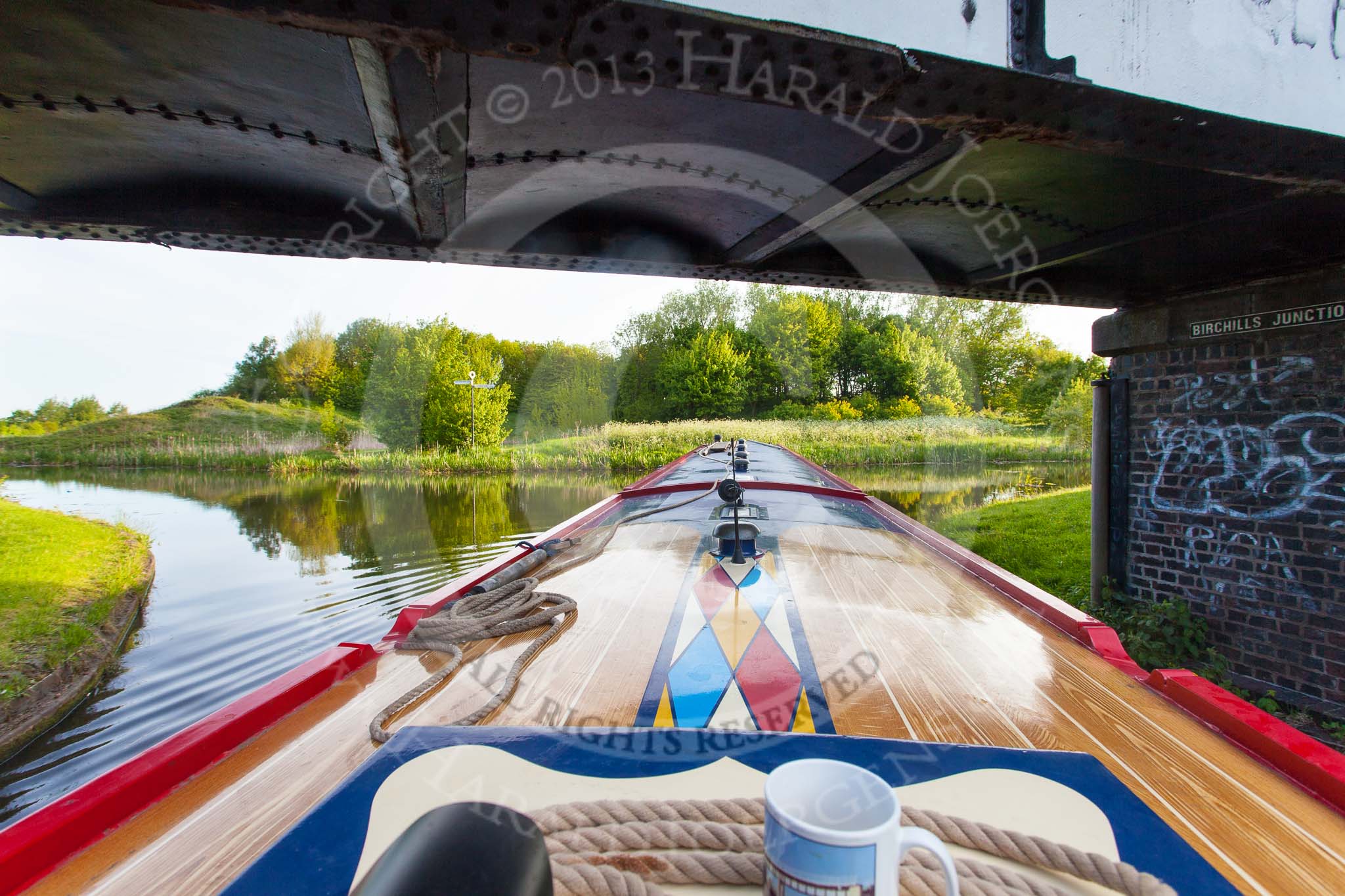 BCN Marathon Challenge 2013: NB "Felonious Mongoose" passing Birchills Junction Bridge, where the Walsall Branch Canal meets the Wyrley & Essington Canal.. Birmingham Canal Navigation, United Kingdom, on 26 May 2013 at 06:28, image #355