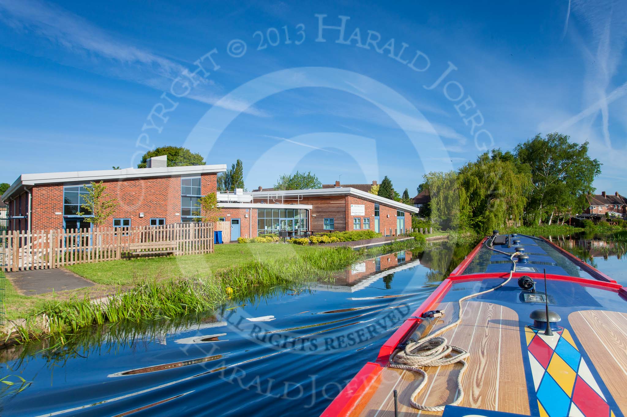 BCN Marathon Challenge 2013: NB "Felonious Mongoose" on the Wyrley & Essington Canal at the Stan Ball Centre, the Walsall Community Centre between Holland Bridge and Little Bloxwich Bridge.. Birmingham Canal Navigation, United Kingdom, on 26 May 2013 at 07:33, image #358