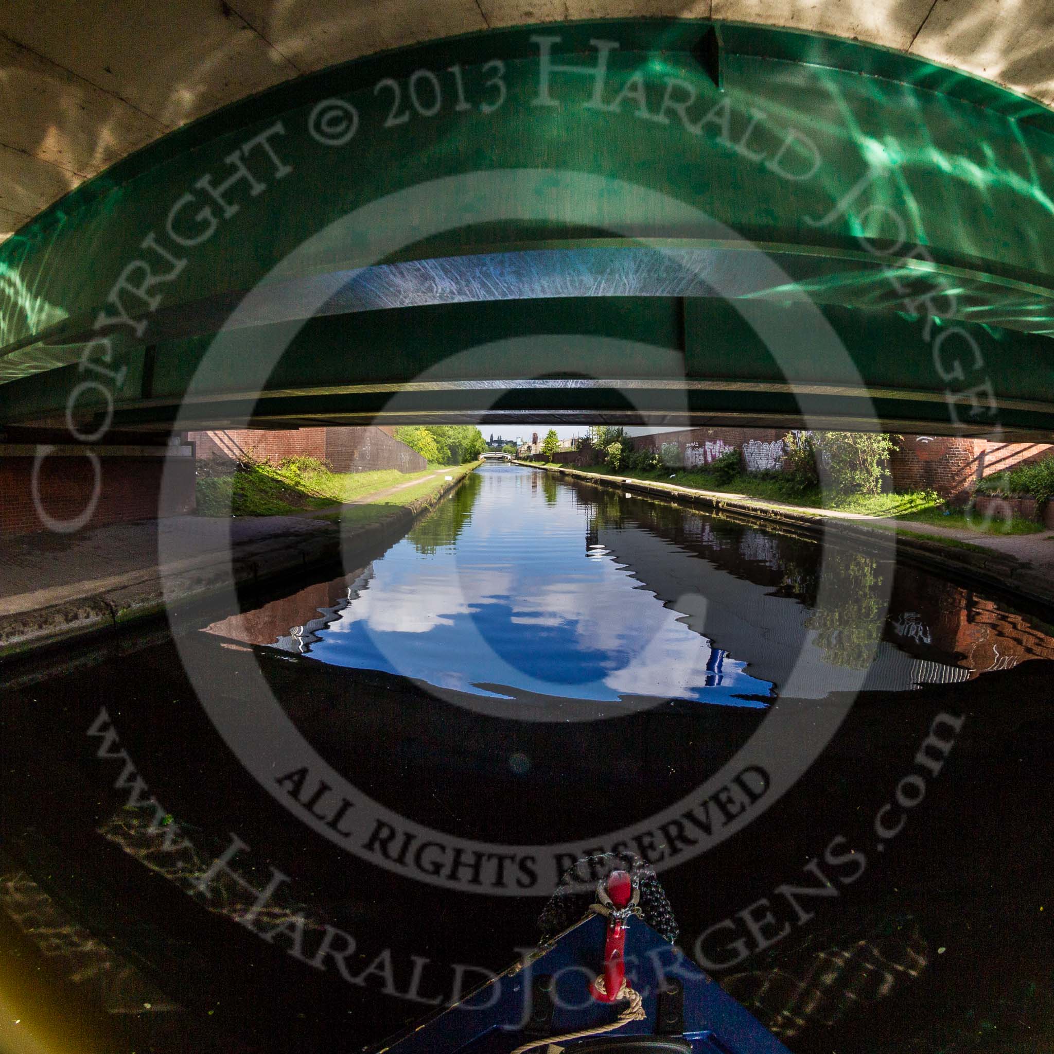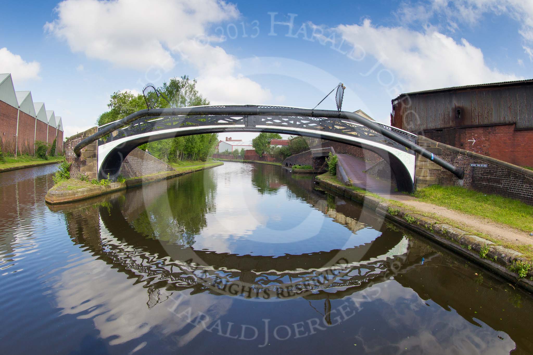 BCN Marathon Challenge 2013: Fish Eye view of Rabone Lane Bridge, BCN New Main Line. The modern bridge carries the B4136 over the canal.. Birmingham Canal Navigation, United Kingdom, on 25 May 2013 at 08:50, image #83