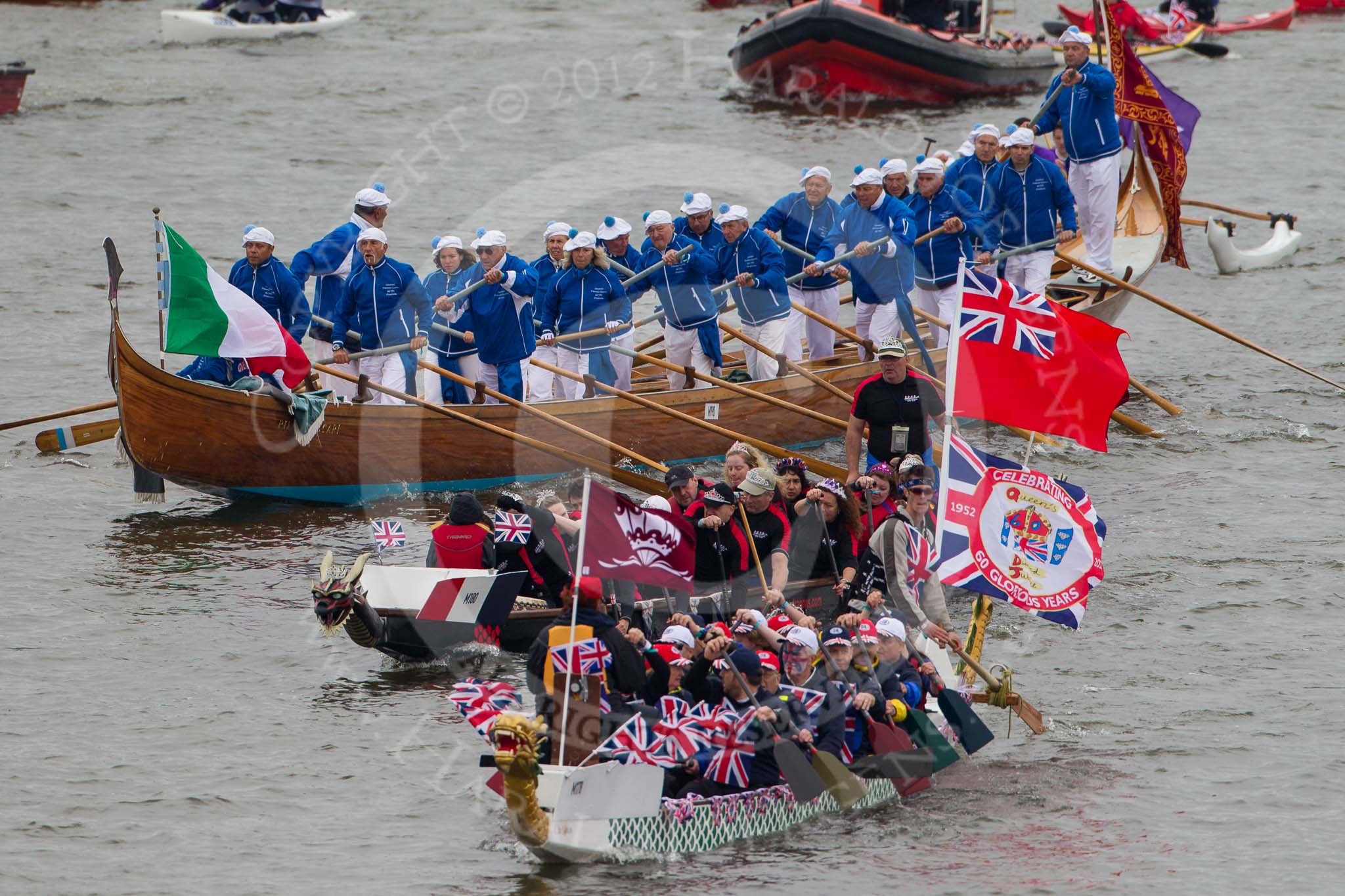 Thames Diamond Jubilee Pageant: DRAGON BOATS-Wraysbury Dragons ( M178), Thames Dragons (M180) and GONDOLAS- Francesco Querini (M190)..