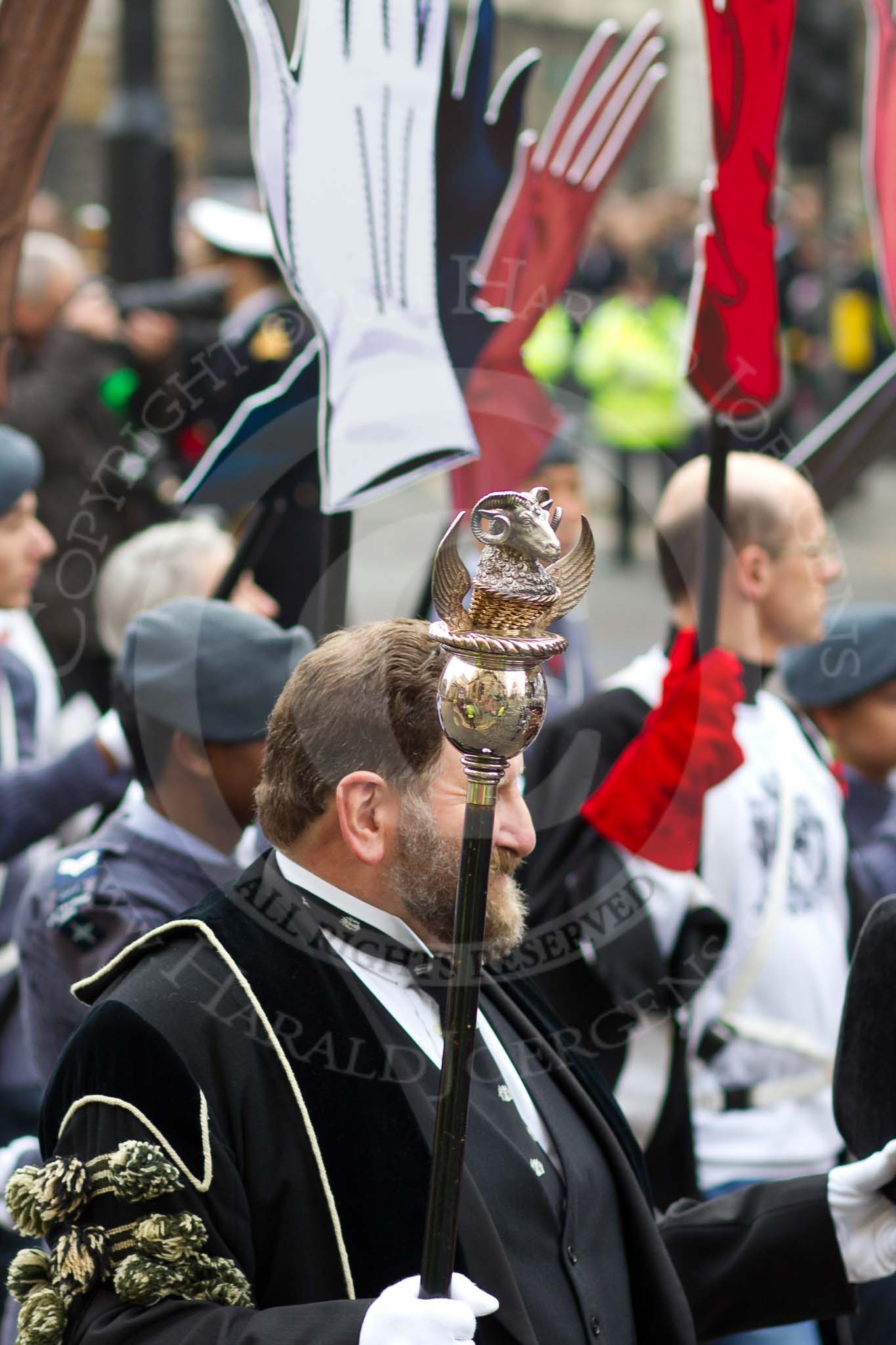 The Lord Mayor's Show 2011: Beadle, Paul Tredgett, Worshipful Company of Glovers (http://www.thegloverscompany.org/).. Opposite Mansion House, City of London, London, -, United Kingdom, on 12 November 2011 at 11:12, image #161
