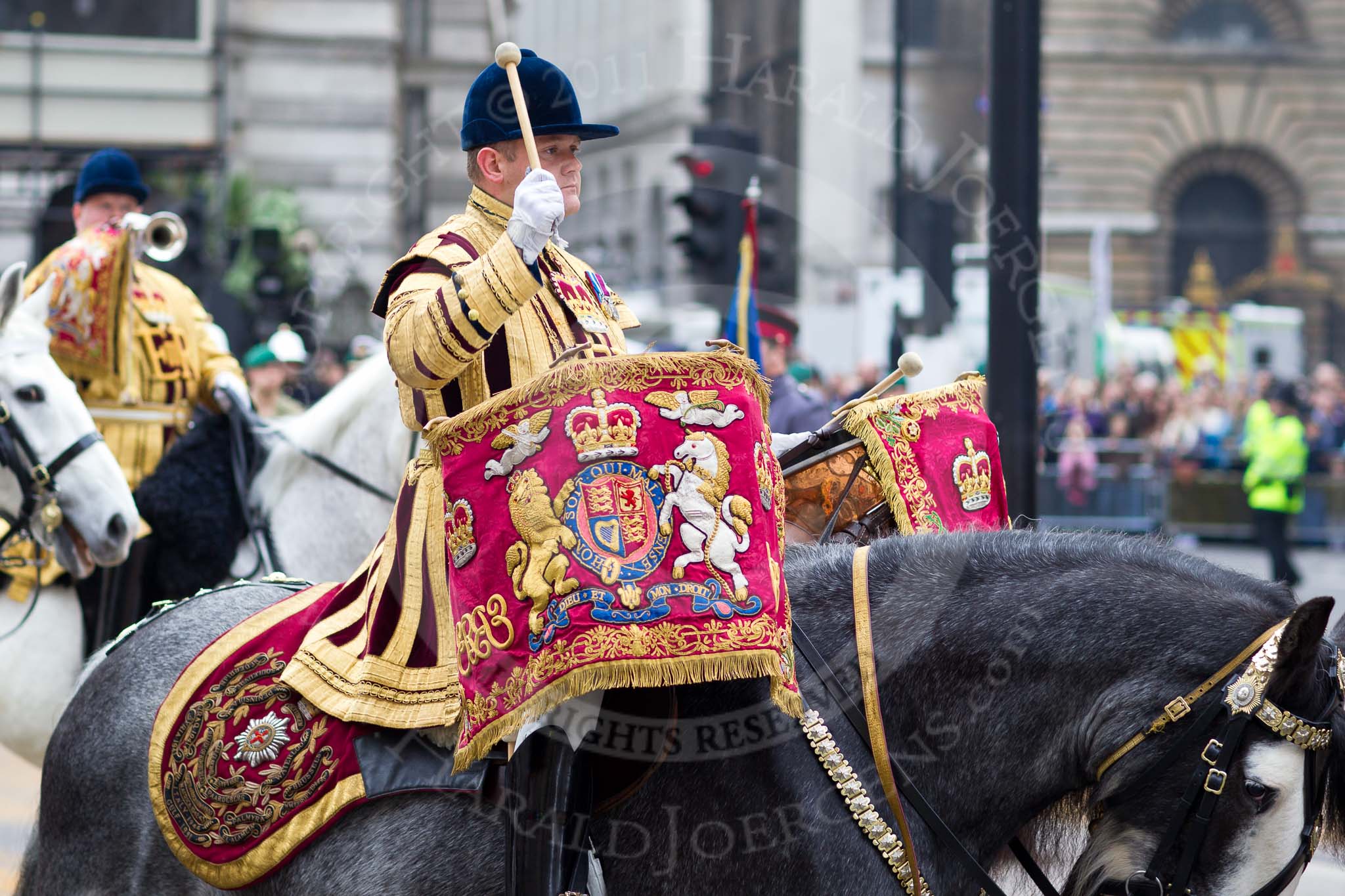 The Lord Mayor's Show 2011: The kettle drummer of the Household Cavalry Mounted Regiment Band & Division.. Opposite Mansion House, City of London, London, -, United Kingdom, on 12 November 2011 at 10:49, image #21