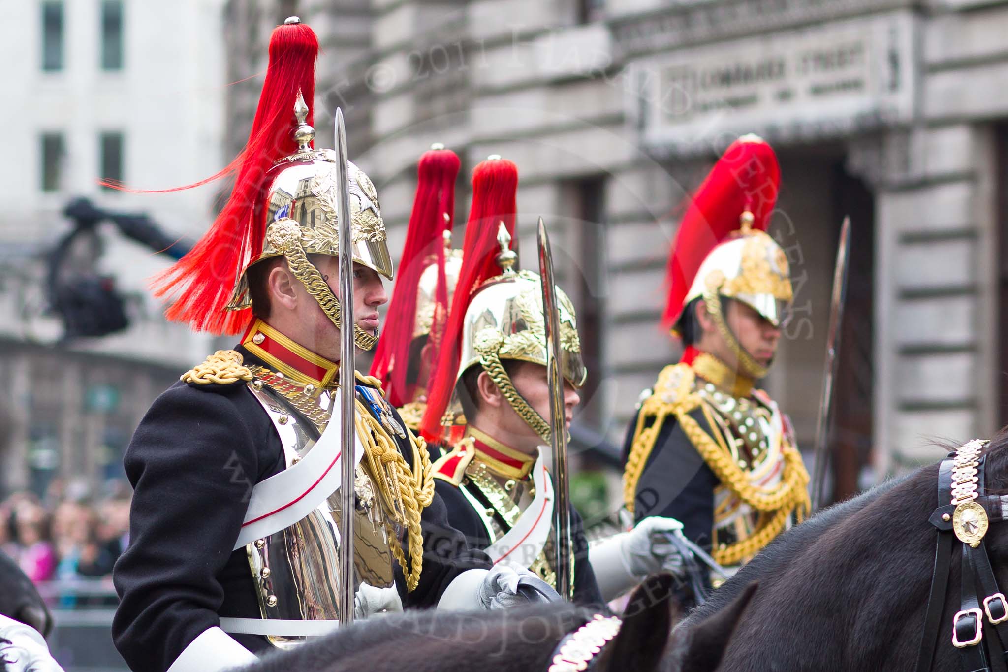 The Lord Mayor's Show 2011: The Blues and Royals, Mounted Squadron, Household Regiment, the escort to the new Lord mayor.. Opposite Mansion House, City of London, London, -, United Kingdom, on 12 November 2011 at 10:50, image #29