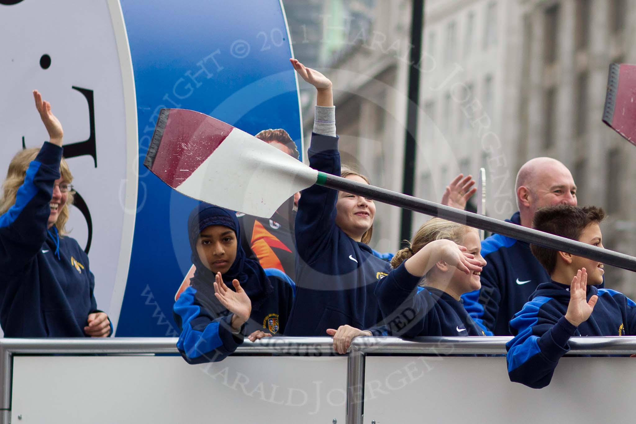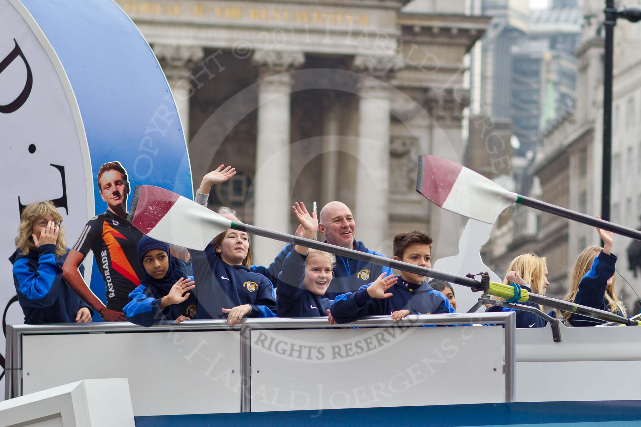 The Lord Mayor's Show 2011: Bradford Grammar School, the Lord Mayor David Wootton's former school, with an Olympic- and rowing scheme (http://www.bgs.bradford.sch.uk/).. Opposite Mansion House, City of London, London, -, United Kingdom, on 12 November 2011 at 11:04, image #80