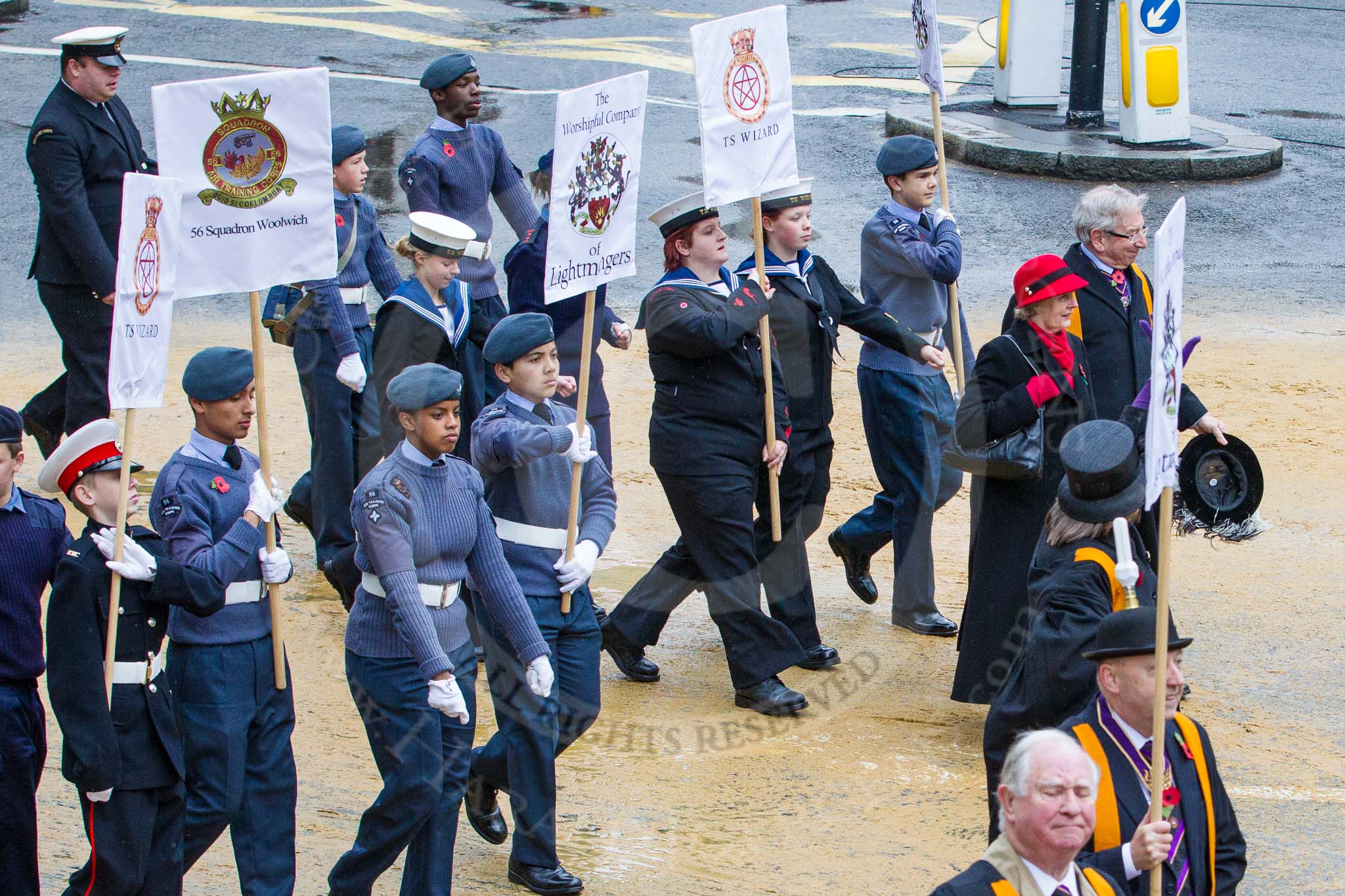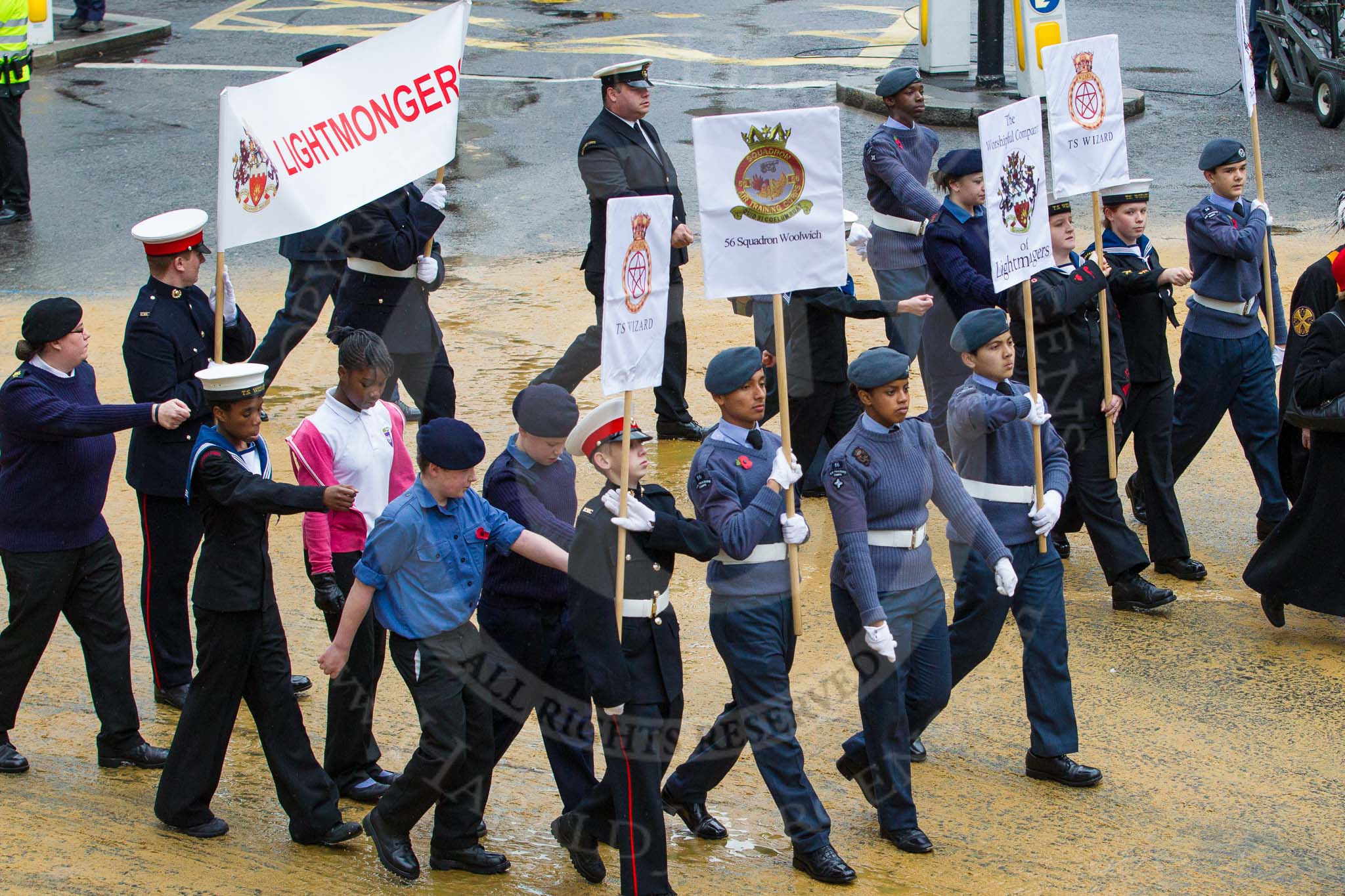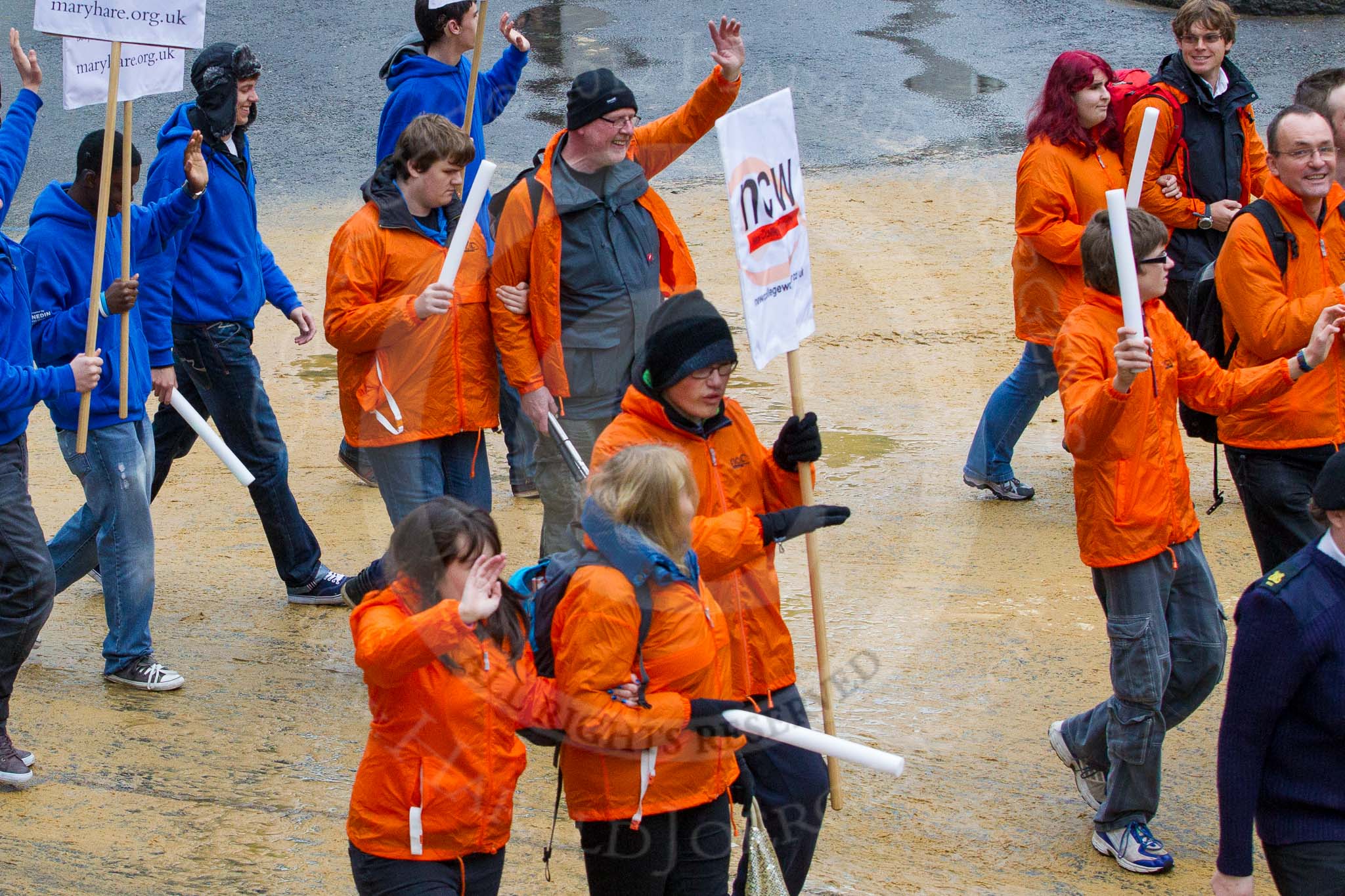 Lord Mayor's Show 2012: Entry 13 - Worshipful Company of Lightmongers, with New College Worcester for the blind and partially sighted, and Mary Hare School for deaf children.. Press stand opposite Mansion House, City of London, London, Greater London, United Kingdom, on 10 November 2012 at 11:06, image #294