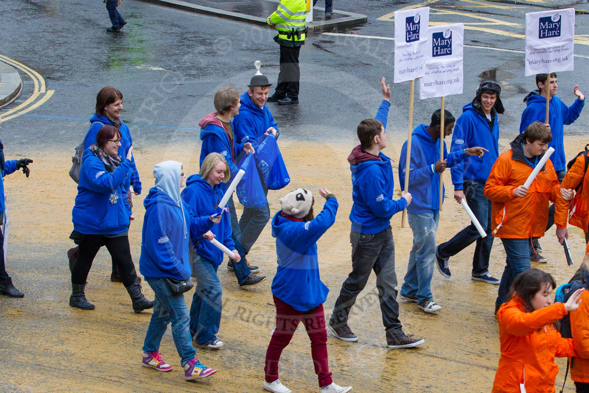 Lord Mayor's Show 2012: Entry 13 - Worshipful Company of Lightmongers, with New College Worcester for the blind and partially sighted, and Mary Hare School for deaf children.. Press stand opposite Mansion House, City of London, London, Greater London, United Kingdom, on 10 November 2012 at 11:05, image #287