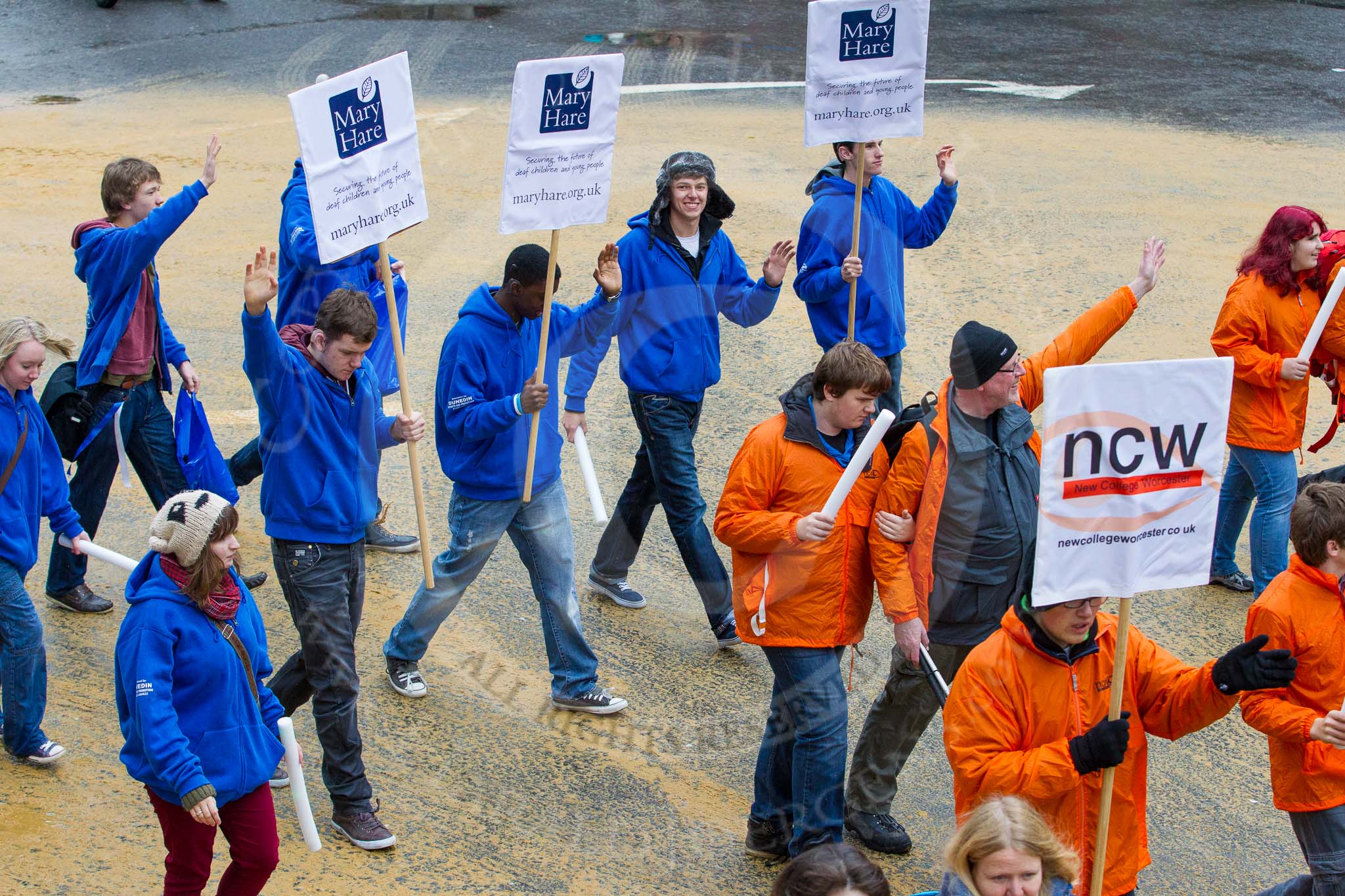 Lord Mayor's Show 2012: Entry 13 - Worshipful Company of Lightmongers, with New College Worcester for the blind and partially sighted, and Mary Hare School for deaf children.. Press stand opposite Mansion House, City of London, London, Greater London, United Kingdom, on 10 November 2012 at 11:05, image #289
