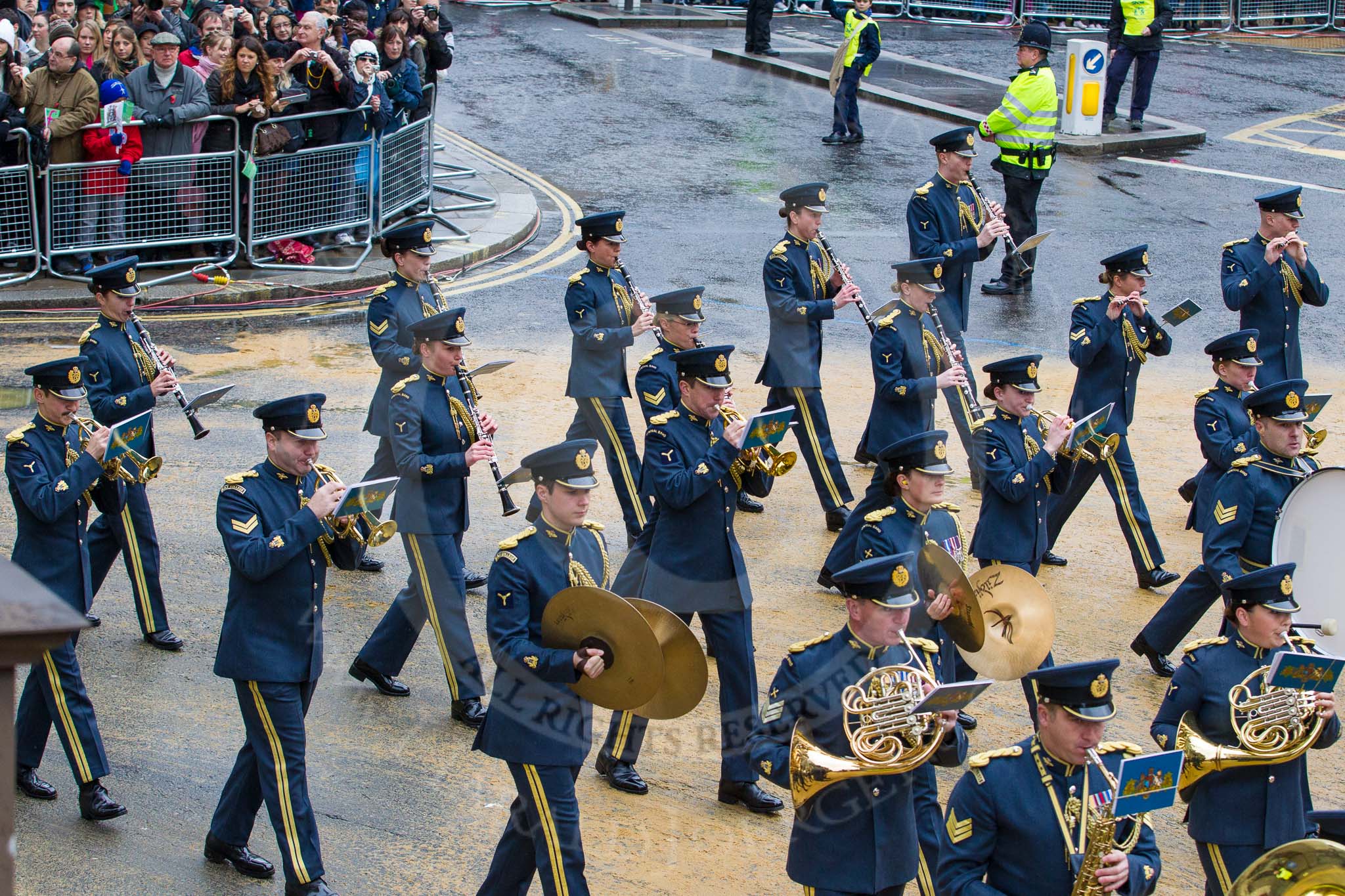 Lord Mayor's Show 2012: Entry 16 - Central Band of the RAF.. Press stand opposite Mansion House, City of London, London, Greater London, United Kingdom, on 10 November 2012 at 11:07, image #322