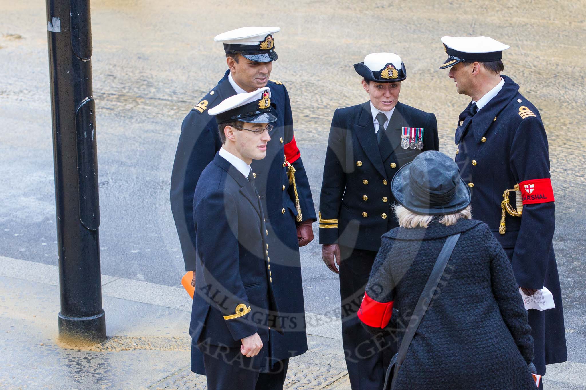 Lord Mayor's Show 2012: TRoyal Navy officers acting as Marshalls at the Lord Mayor's Show.. Press stand opposite Mansion House, City of London, London, Greater London, United Kingdom, on 10 November 2012 at 10:21, image #66
