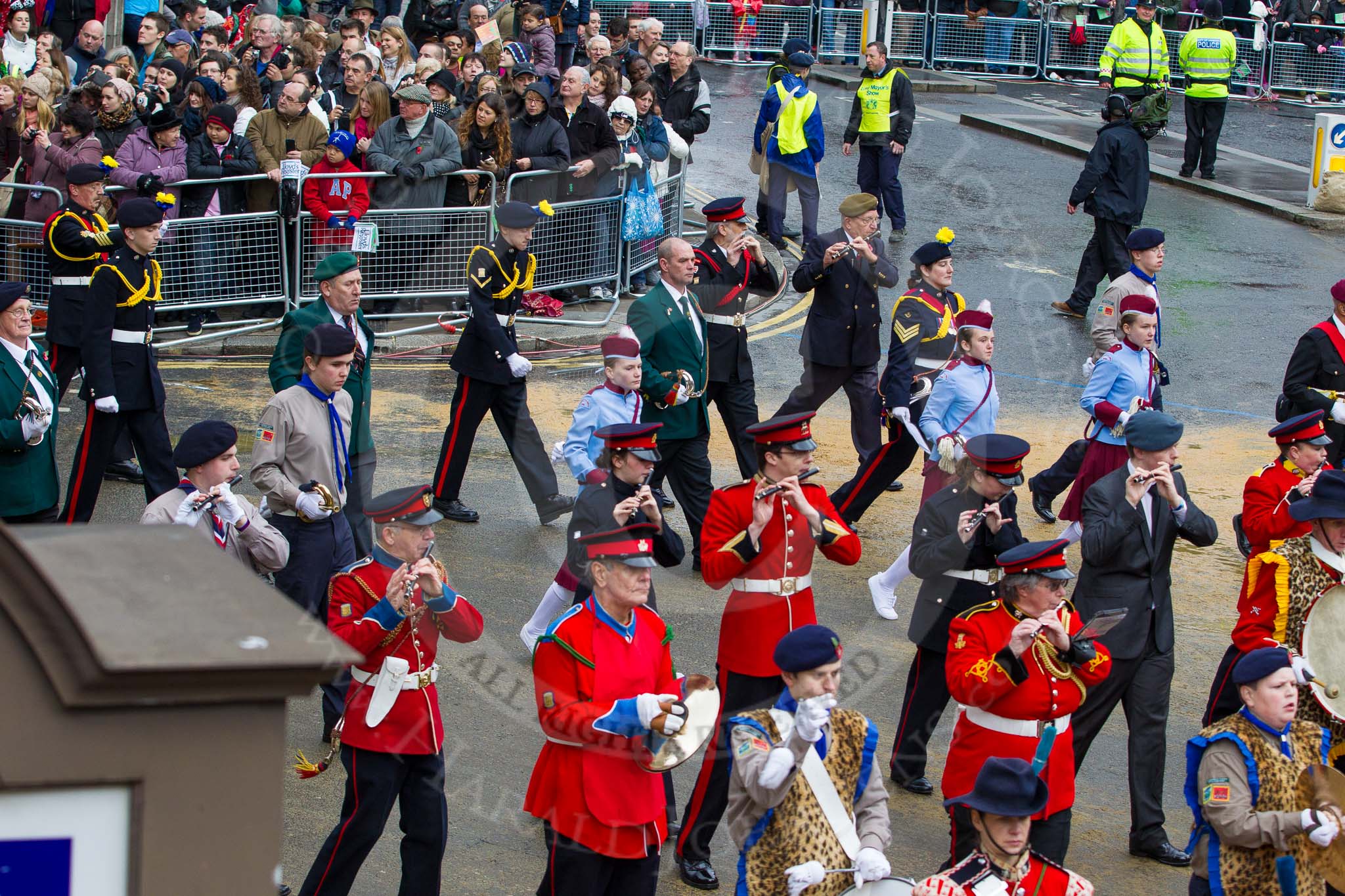 Lord Mayor's Show 2012: Entry 105 - Corps of Drums Society.. Press stand opposite Mansion House, City of London, London, Greater London, United Kingdom, on 10 November 2012 at 11:53, image #1481