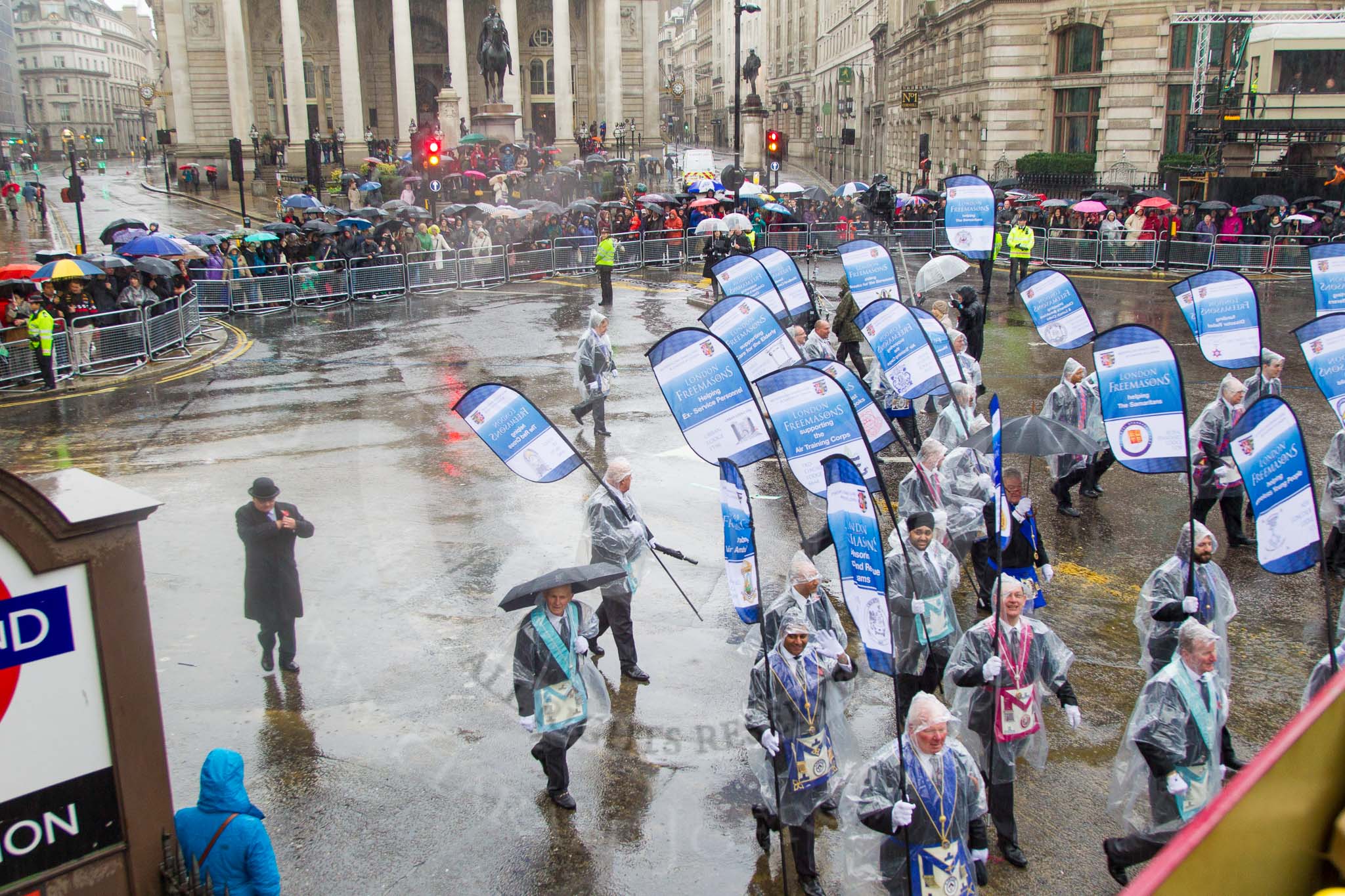 Lord Mayor's Show 2013: 86-Metropolitan Grand Lodge of London- integrity, honesty and community support are at the heart of Freemasonry.. Press stand opposite Mansion House, City of London, London, Greater London, United Kingdom, on 09 November 2013 at 11:47, image #1041