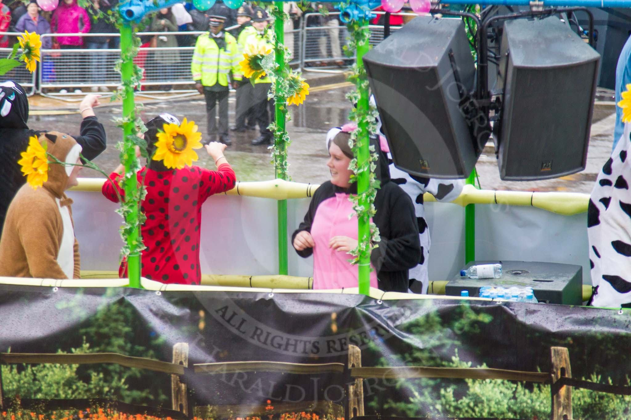 Lord Mayor's Show 2013: 113-Admiral Scaffolding-group at this year is promoting British meadows with a special take on 'It's Bug life'.. Press stand opposite Mansion House, City of London, London, Greater London, United Kingdom, on 09 November 2013 at 12:01, image #1311