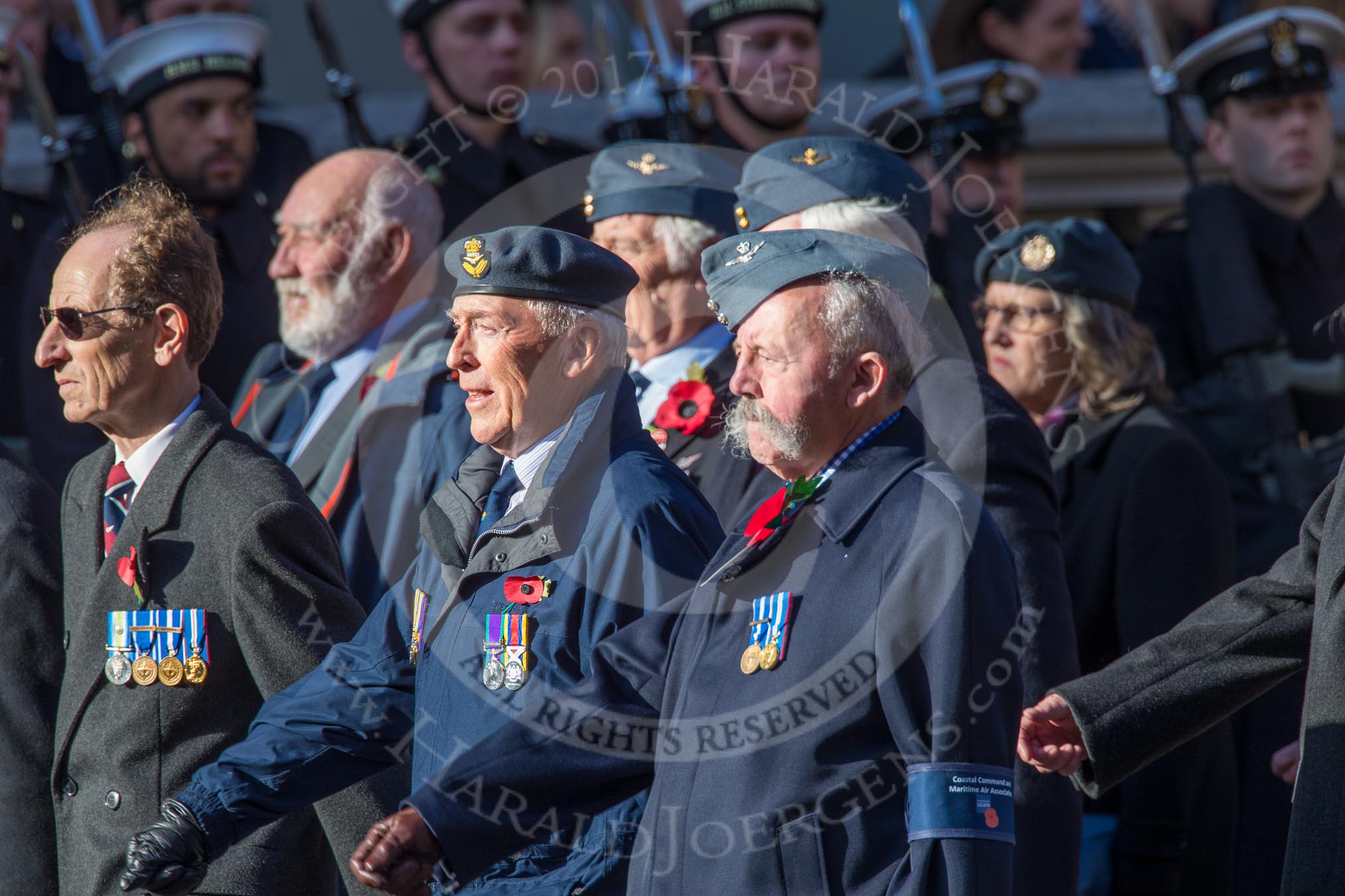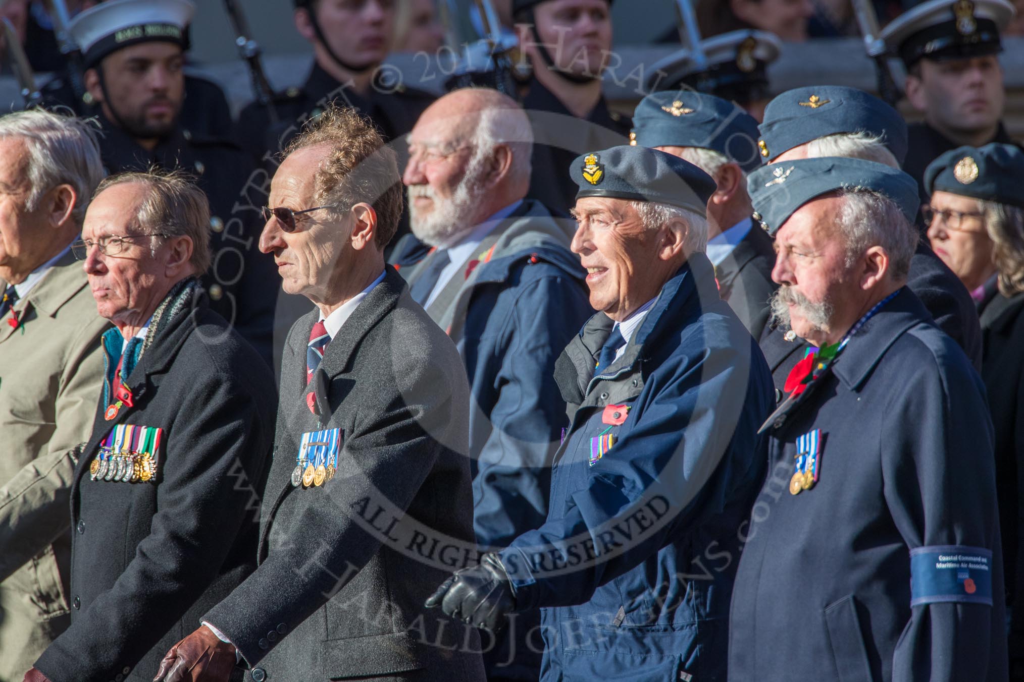 Coastal Command and Maritime Air Association (CCMAA) (Group C18, 21 members) during the Royal British Legion March Past on Remembrance Sunday at the Cenotaph, Whitehall, Westminster, London, 11 November 2018, 12:17