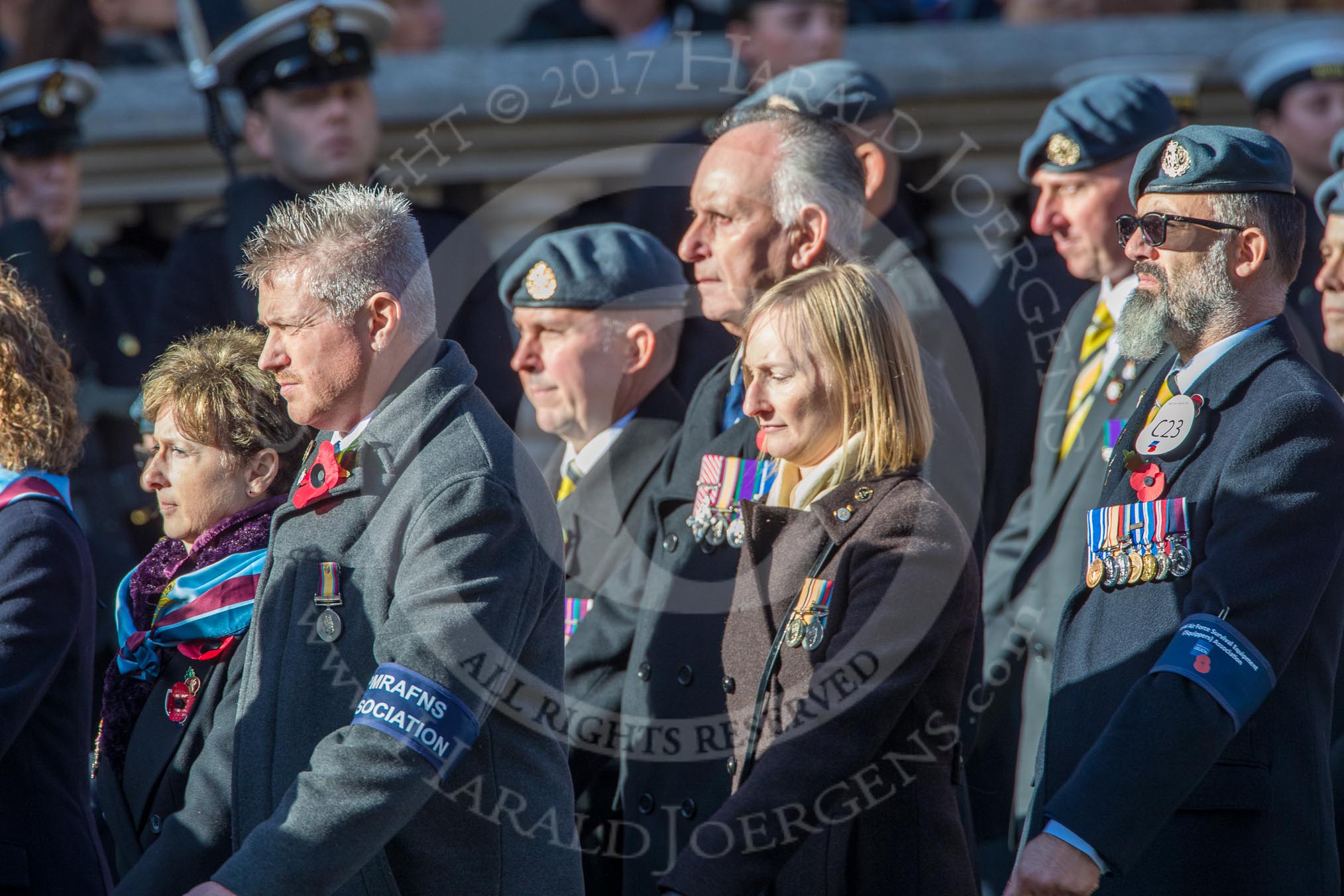 Royal Air Force Survival Equipment (squippers) Association (Group C23, 50 members) during the Royal British Legion March Past on Remembrance Sunday at the Cenotaph, Whitehall, Westminster, London, 11 November 2018, 12:18.