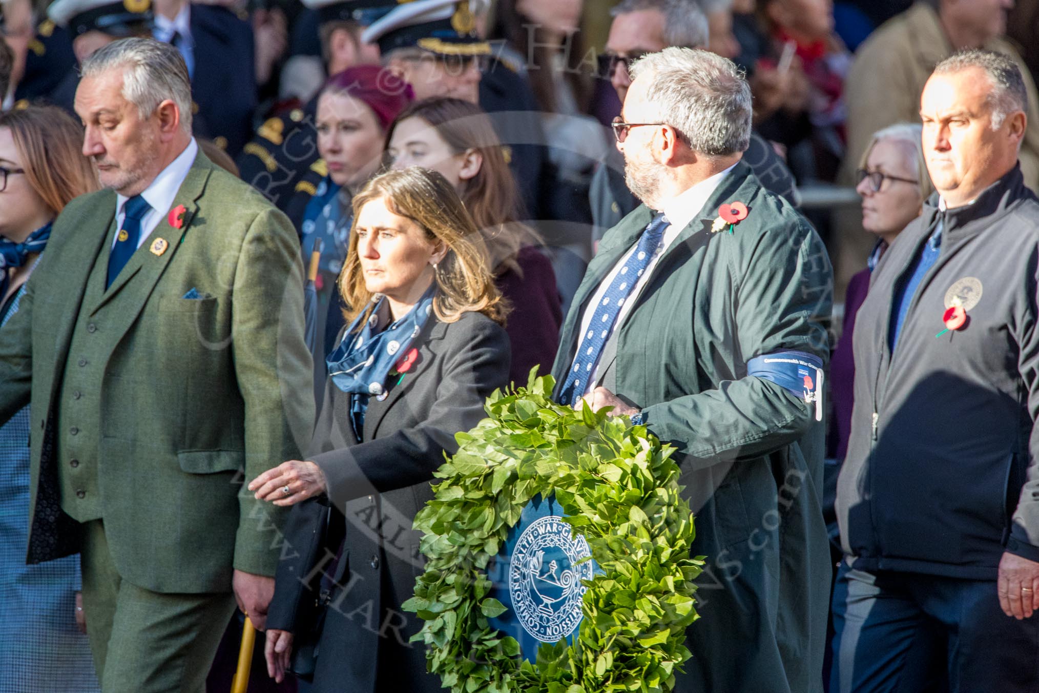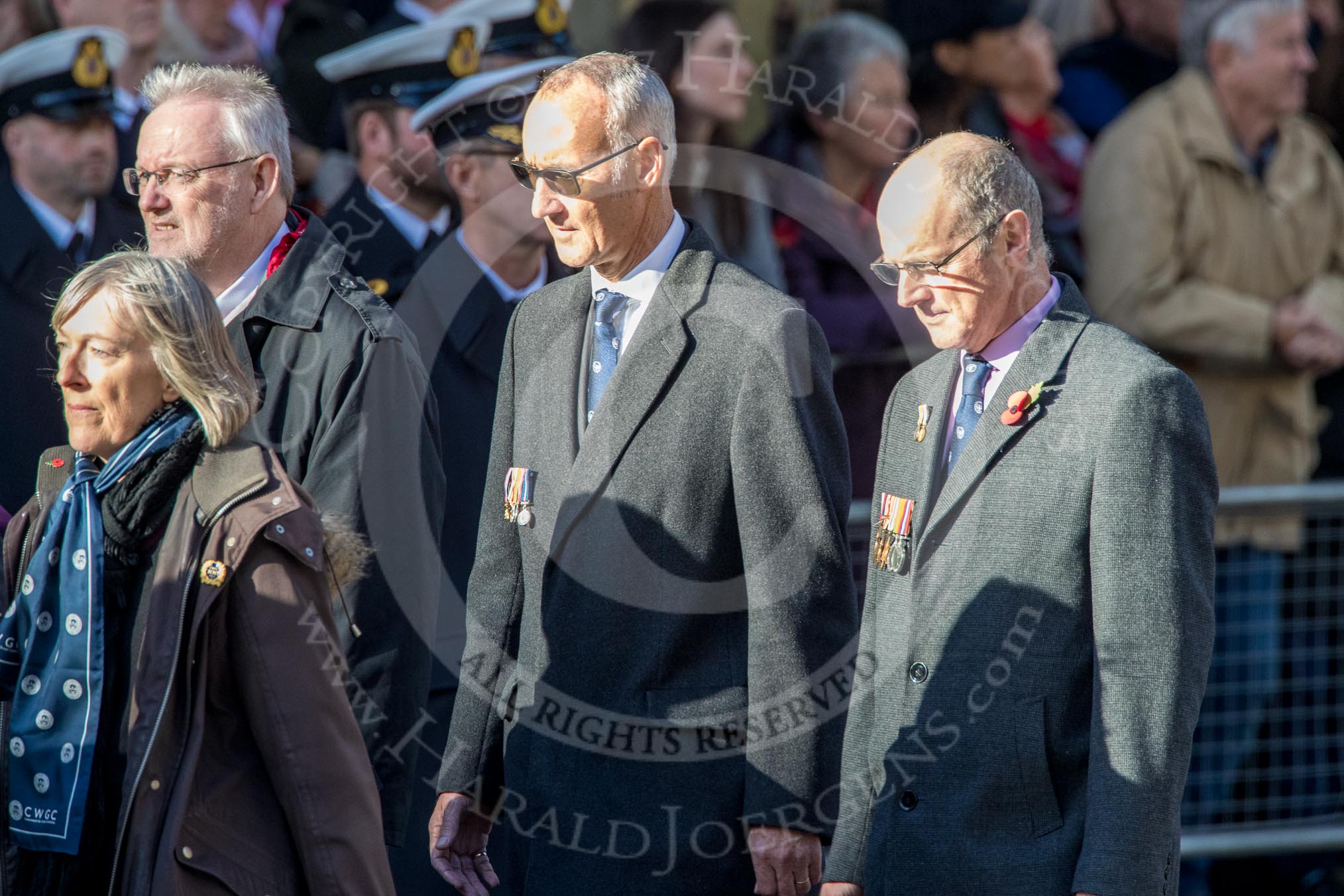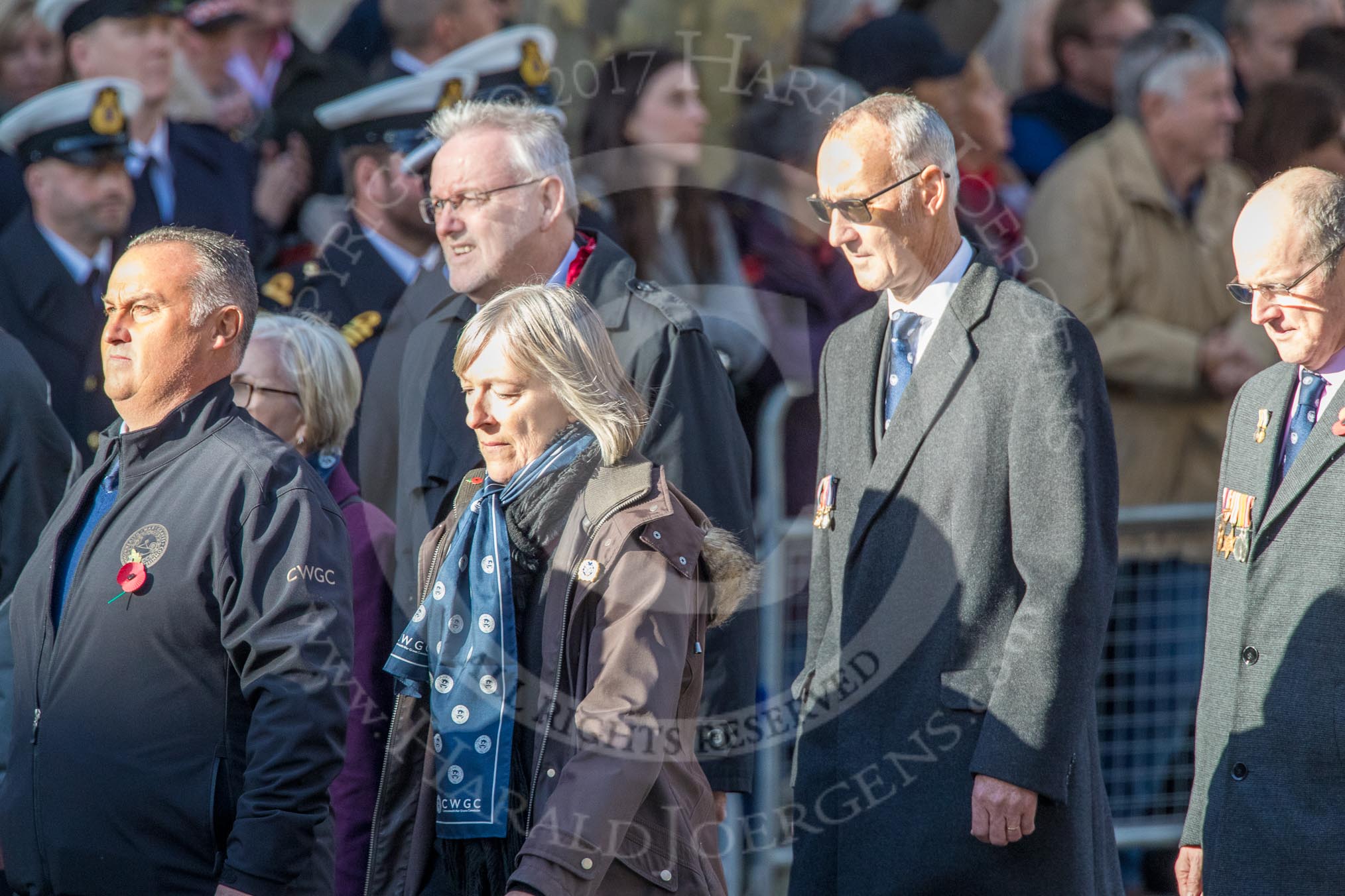 Commonwealth War Graves Commission (Group M50, 19 members) during the Royal British Legion March Past on Remembrance Sunday at the Cenotaph, Whitehall, Westminster, London, 11 November 2018, 12:31.