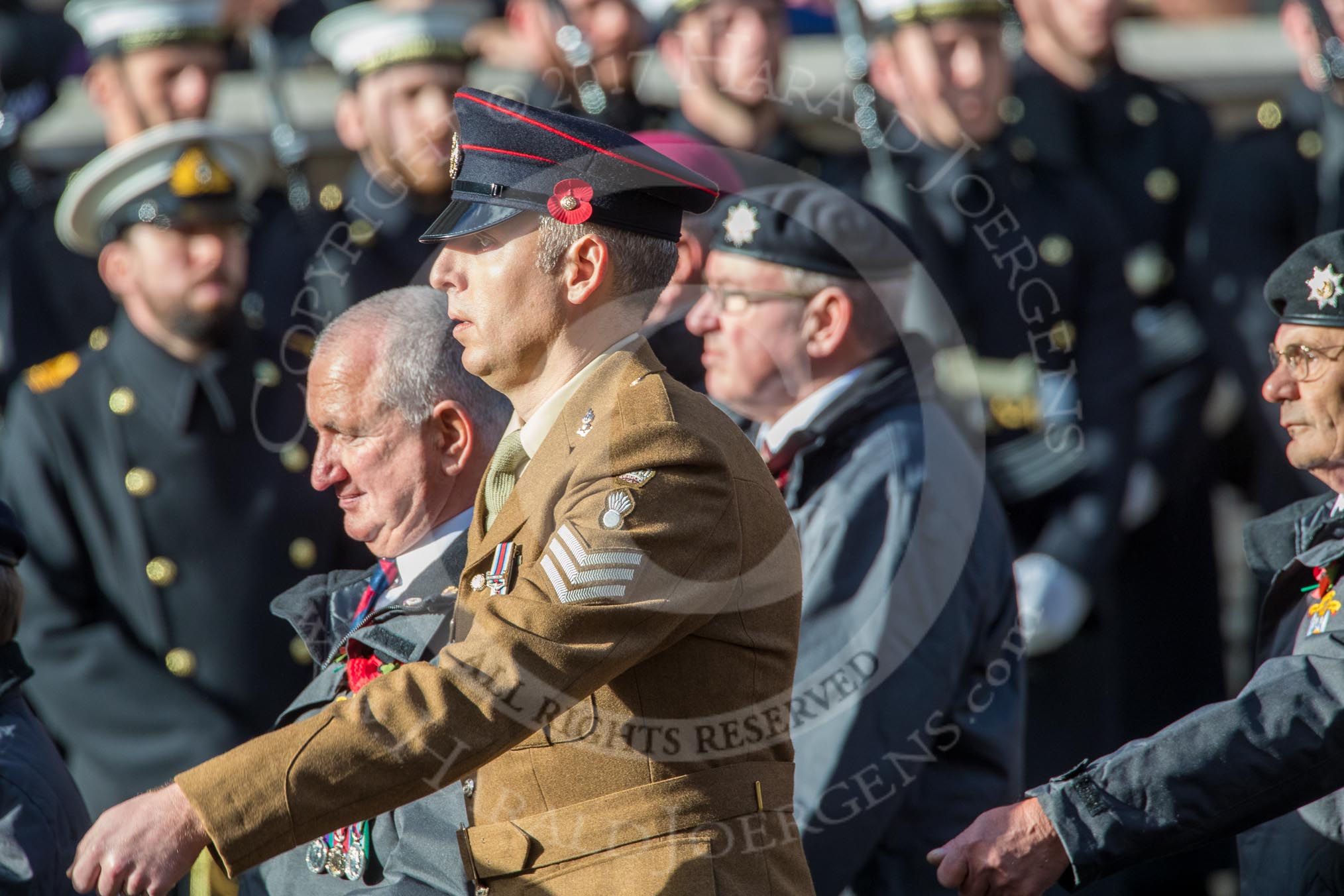 The Cheshire and North Wales Volunteer Decoration and Long Service Medallist’s Association (Group F29, 24 members) during the Royal British Legion March Past on Remembrance Sunday at the Cenotaph, Whitehall, Westminster, London, 11 November 2018, 11:54.