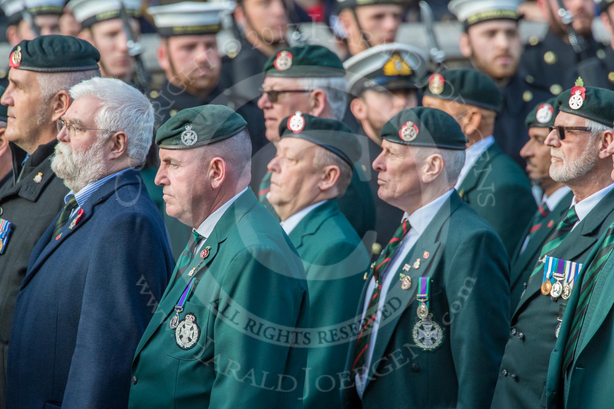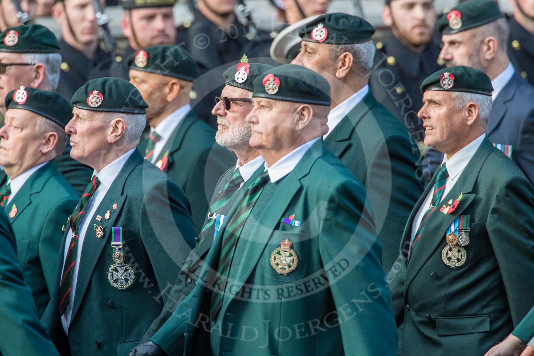 Royal Green Jackets (Group A2, 153 members) during the Royal British Legion March Past on Remembrance Sunday at the Cenotaph, Whitehall, Westminster, London, 11 November 2018, 11:55.