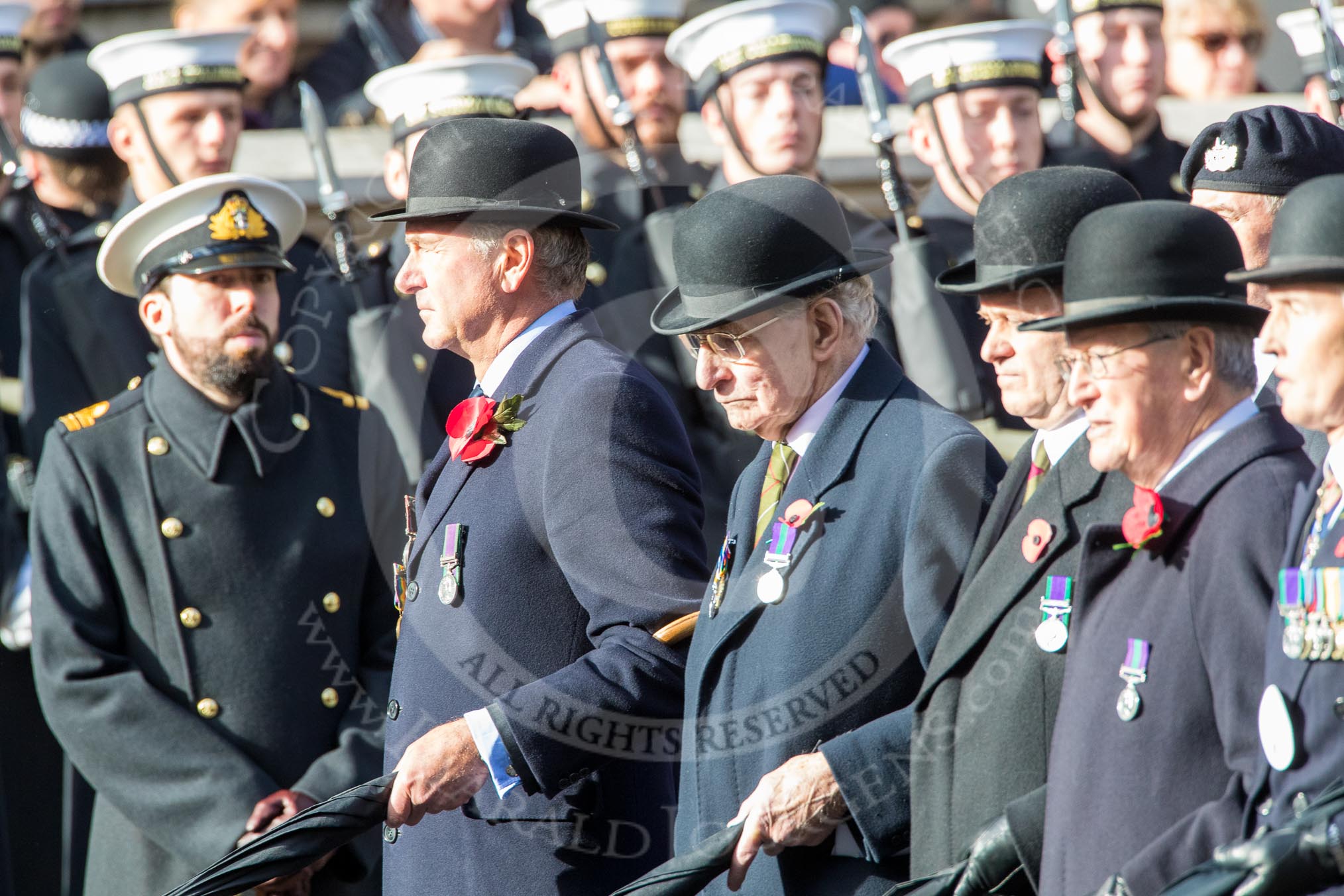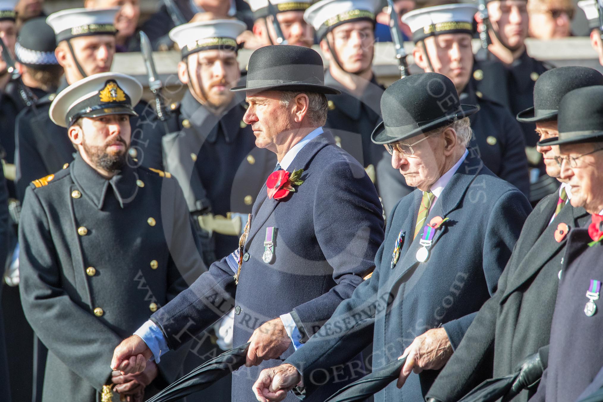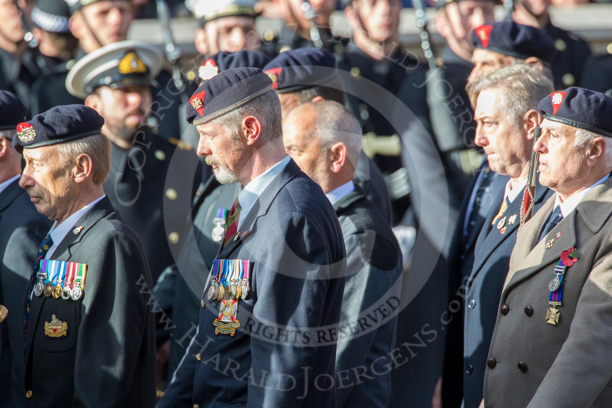 The Light Infantry Association (Group A4, 26 members) during the Royal British Legion March Past on Remembrance Sunday at the Cenotaph, Whitehall, Westminster, London, 11 November 2018, 11:56.