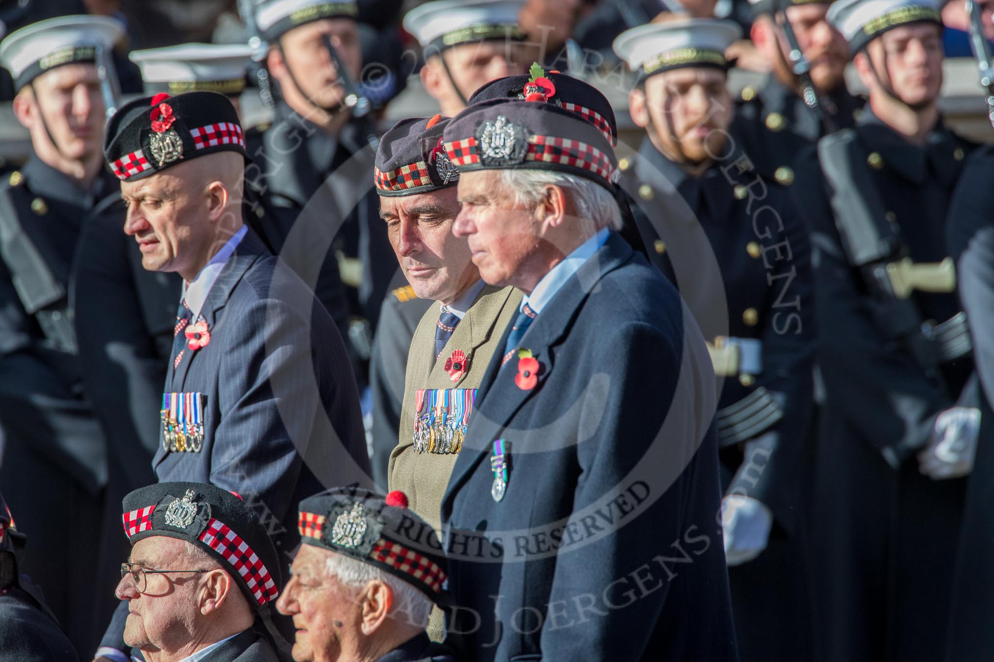 The Royal Scots Regimental Association (Group A8, 25 members) during the Royal British Legion March Past on Remembrance Sunday at the Cenotaph, Whitehall, Westminster, London, 11 November 2018, 11:56.