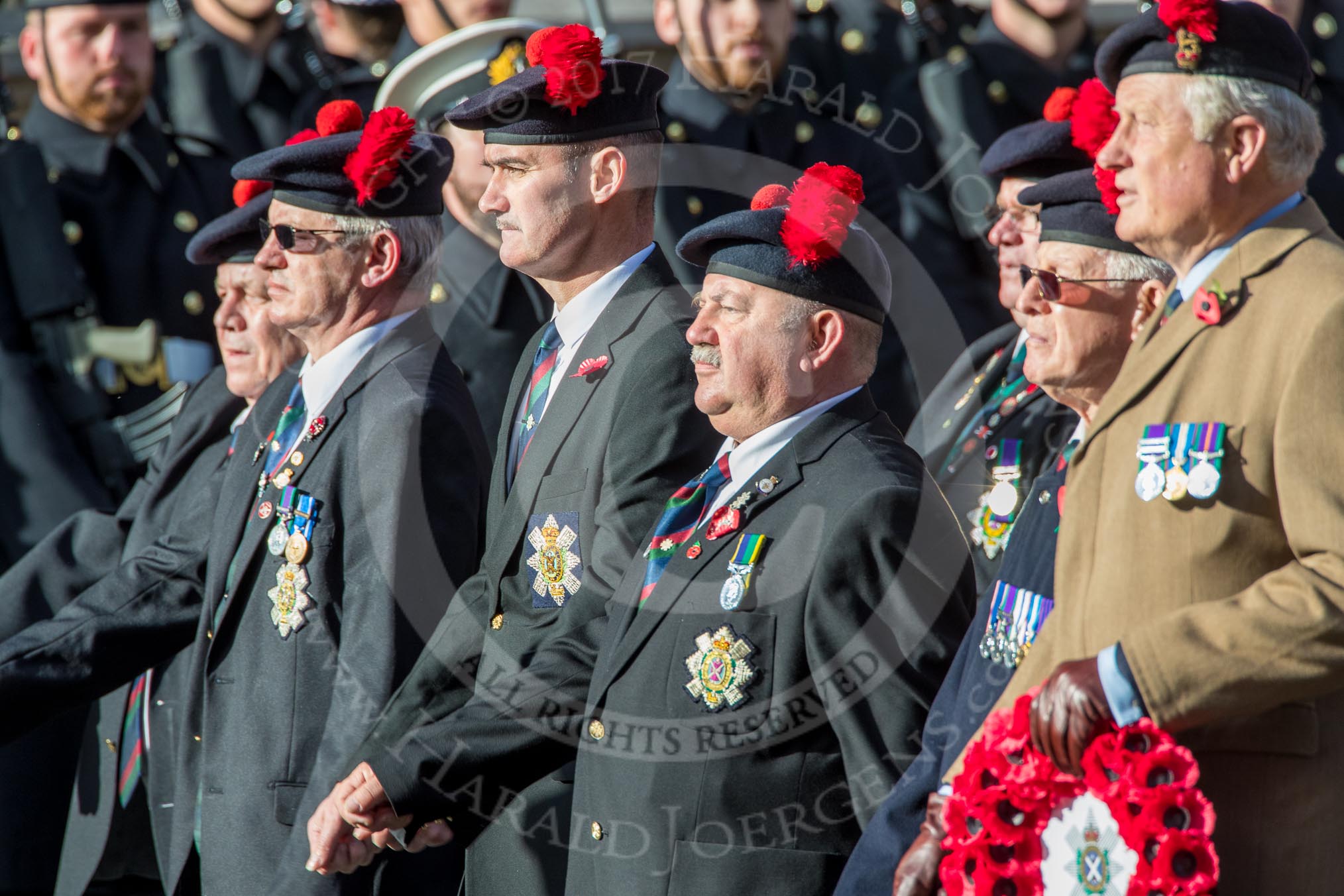 The Black Watch Association - London Branch (Group A10, 72 members) during the Royal British Legion March Past on Remembrance Sunday at the Cenotaph, Whitehall, Westminster, London, 11 November 2018, 11:57.