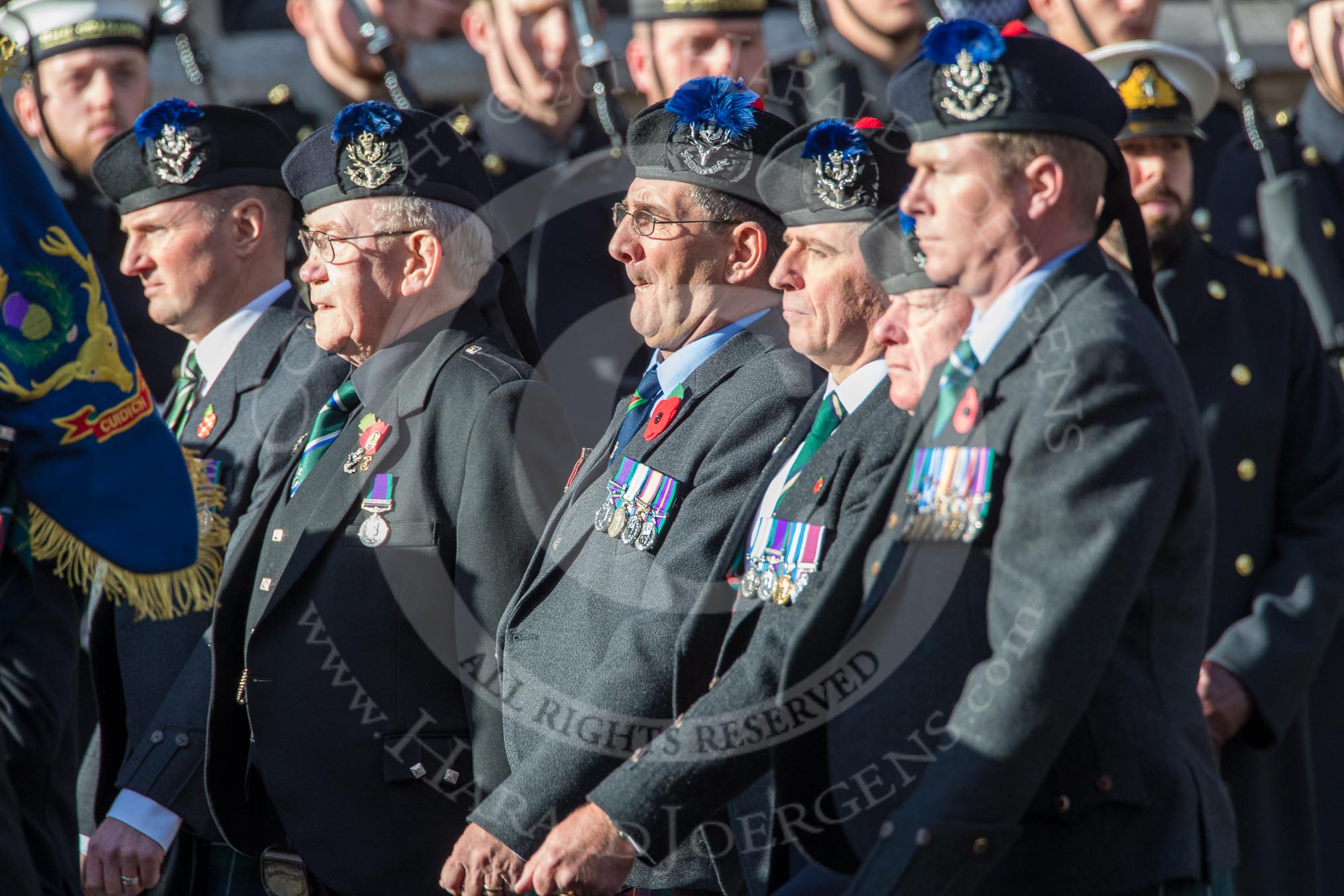 Queen's Own Highlanders Regimental Association (Group A11, 55 members) during the Royal British Legion March Past on Remembrance Sunday at the Cenotaph, Whitehall, Westminster, London, 11 November 2018, 11:57.