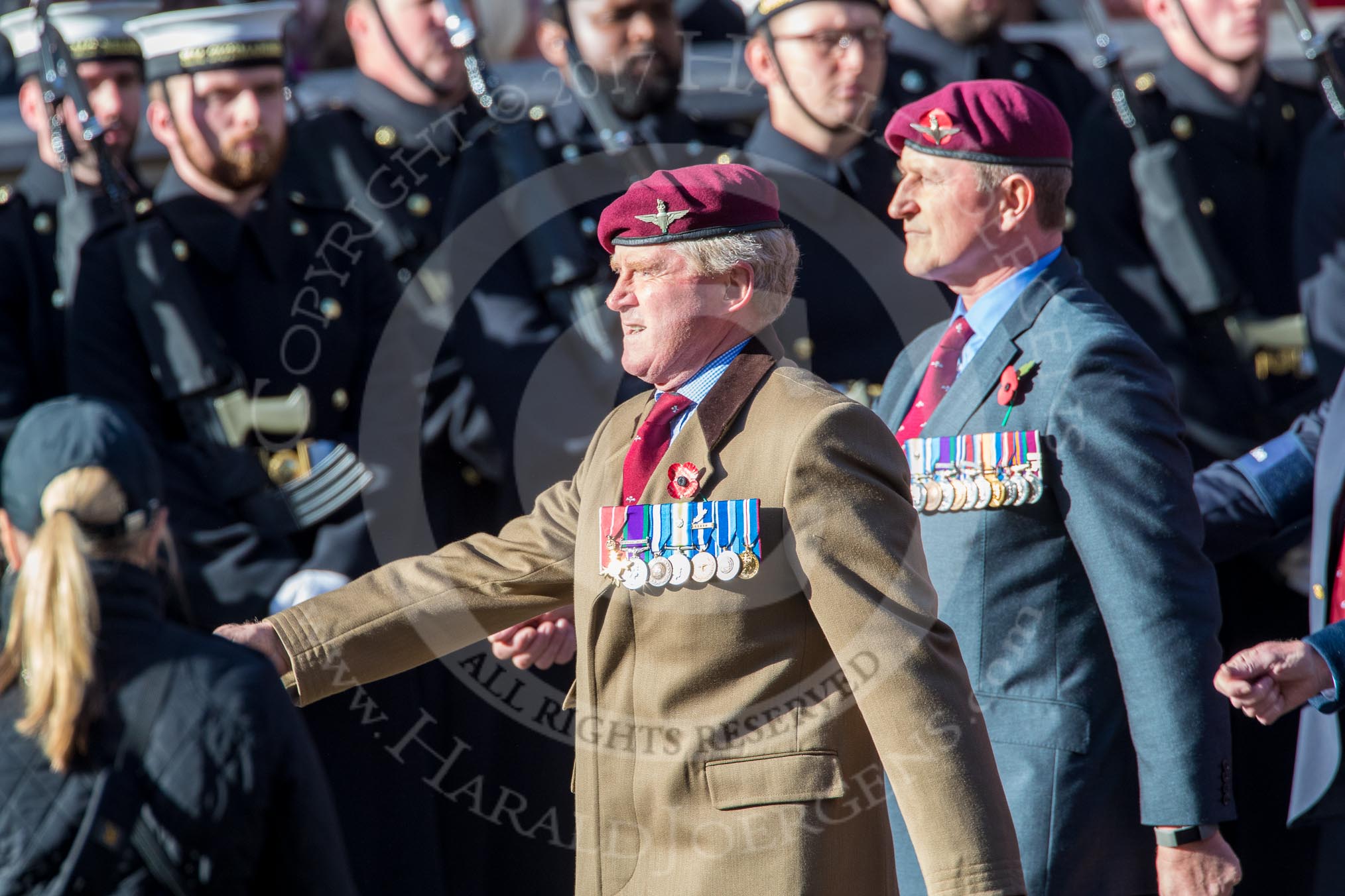 Guards Parachute Association (Group A20, 24 members) during the Royal British Legion March Past on Remembrance Sunday at the Cenotaph, Whitehall, Westminster, London, 11 November 2018, 11:59.