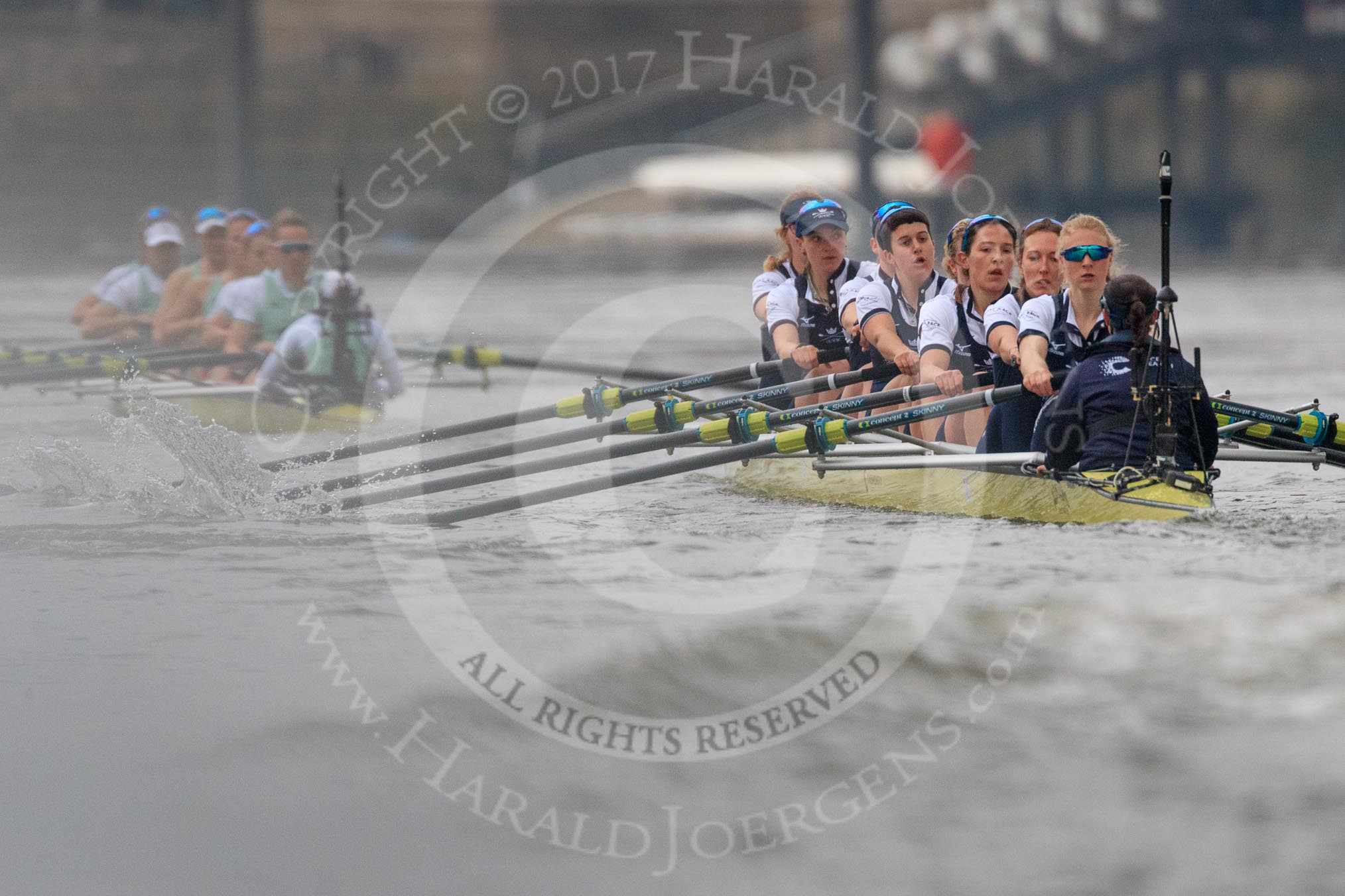 The Cancer Research UK Women's Boat Race 2018: Cambridge is getting away - near Harrods Repository, in the Oxford boat bow Renée Koolschijn, 2 Katherine Erickson, 3 Juliette Perry, 4 Alice Roberts, 5 Morgan McGovern, 6 Sara Kushma, 7 Abigail Killen, stroke Beth Bridgman, cox Jessica Buck.