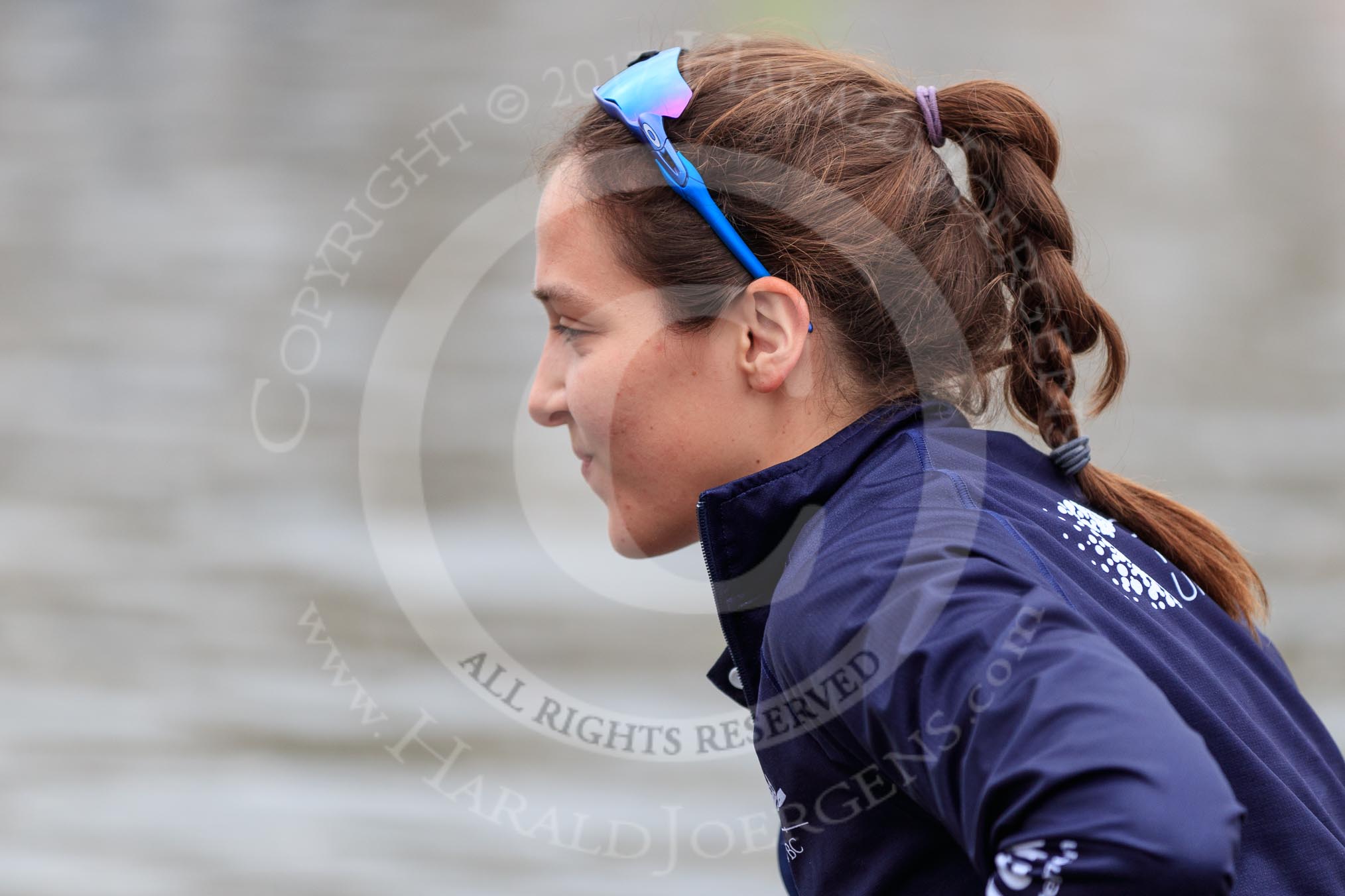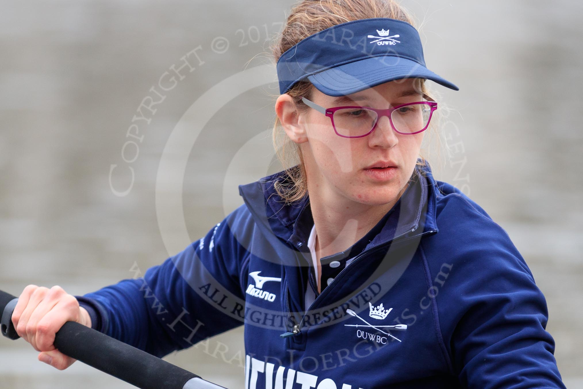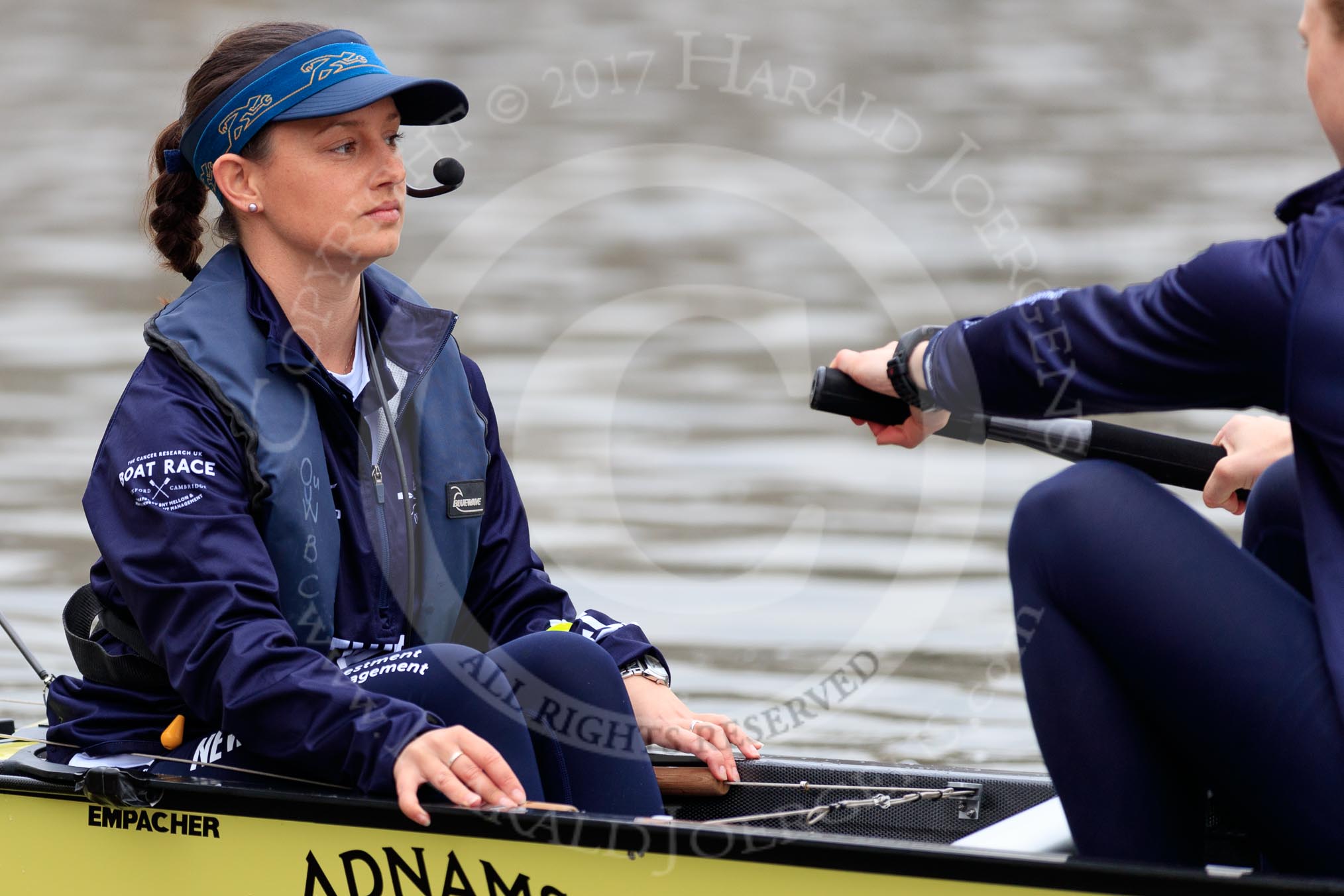 The Cancer Research UK Women's Boat Race 2018: Close-up of Jessica Buck,cox for Oxford.