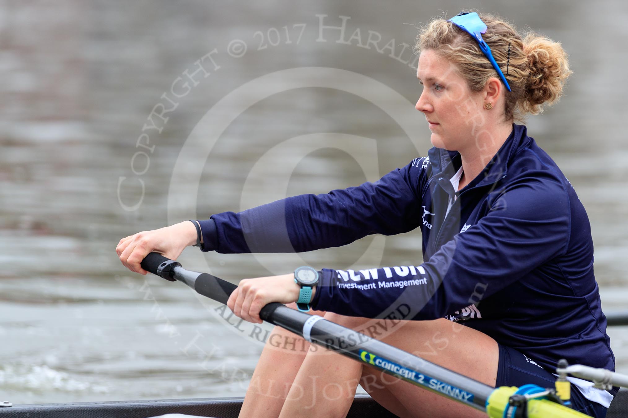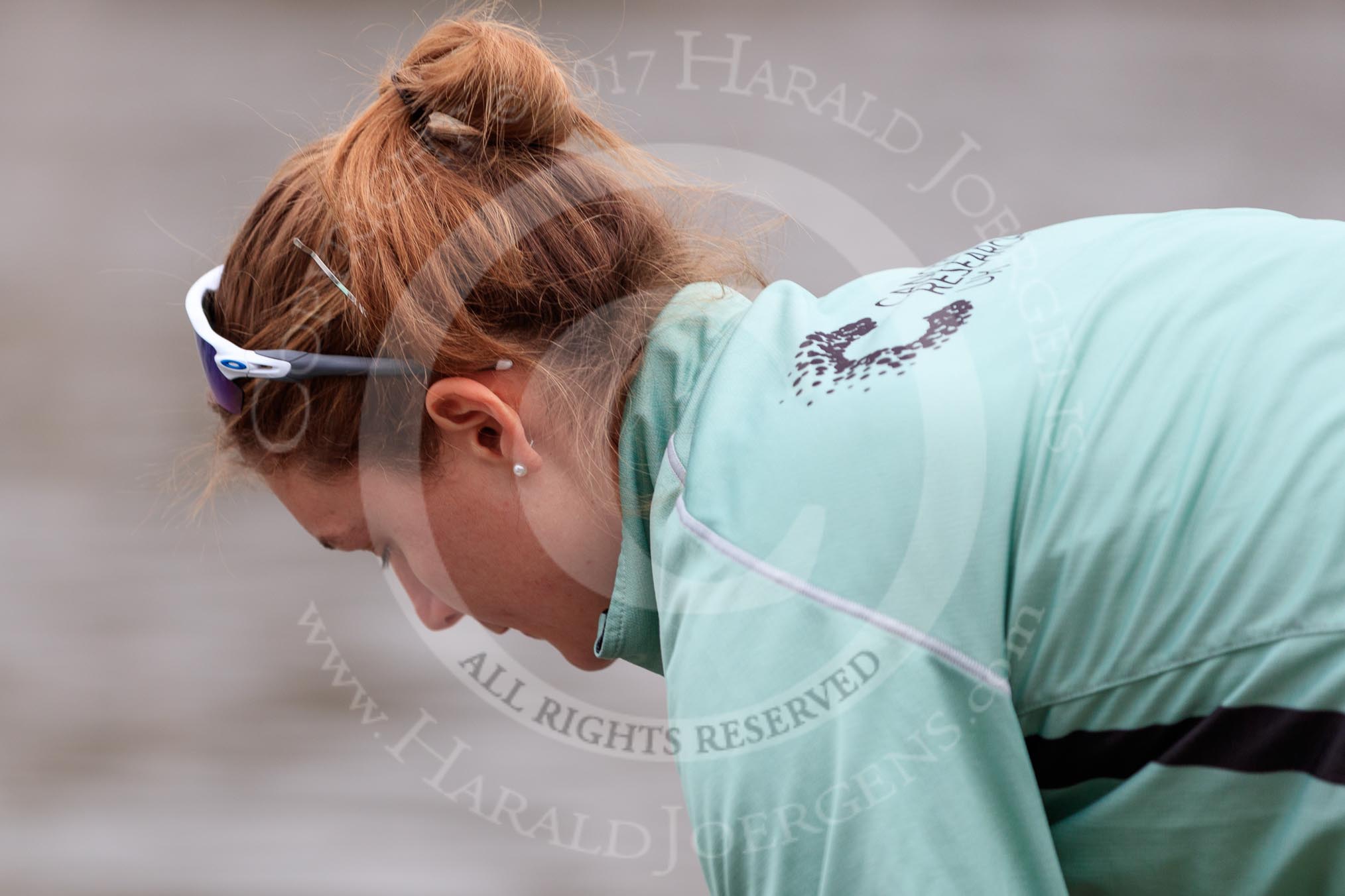 The Cancer Research UK Women's Boat Race 2018: Close-up of Alice White, 6 seat for Cambridge.