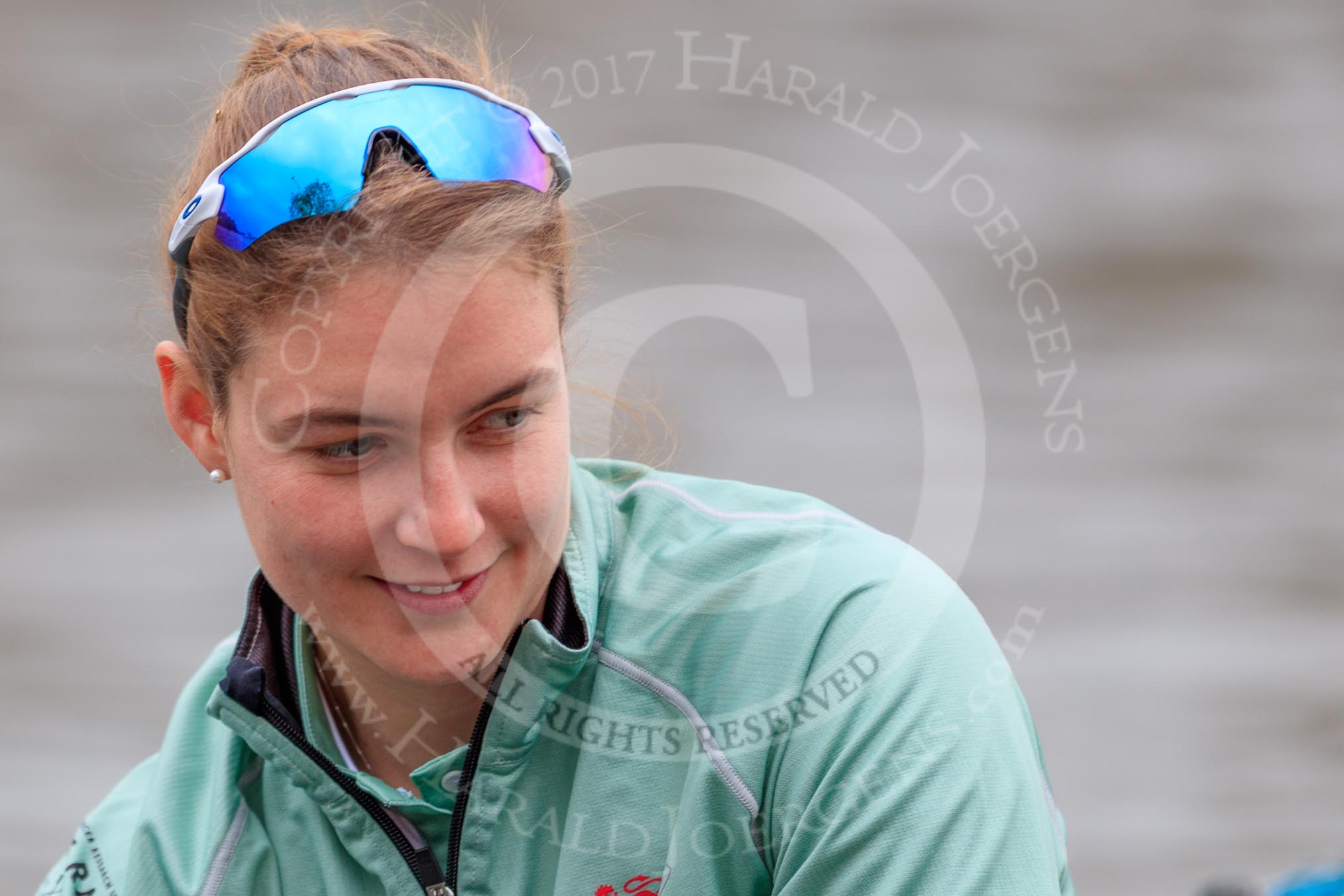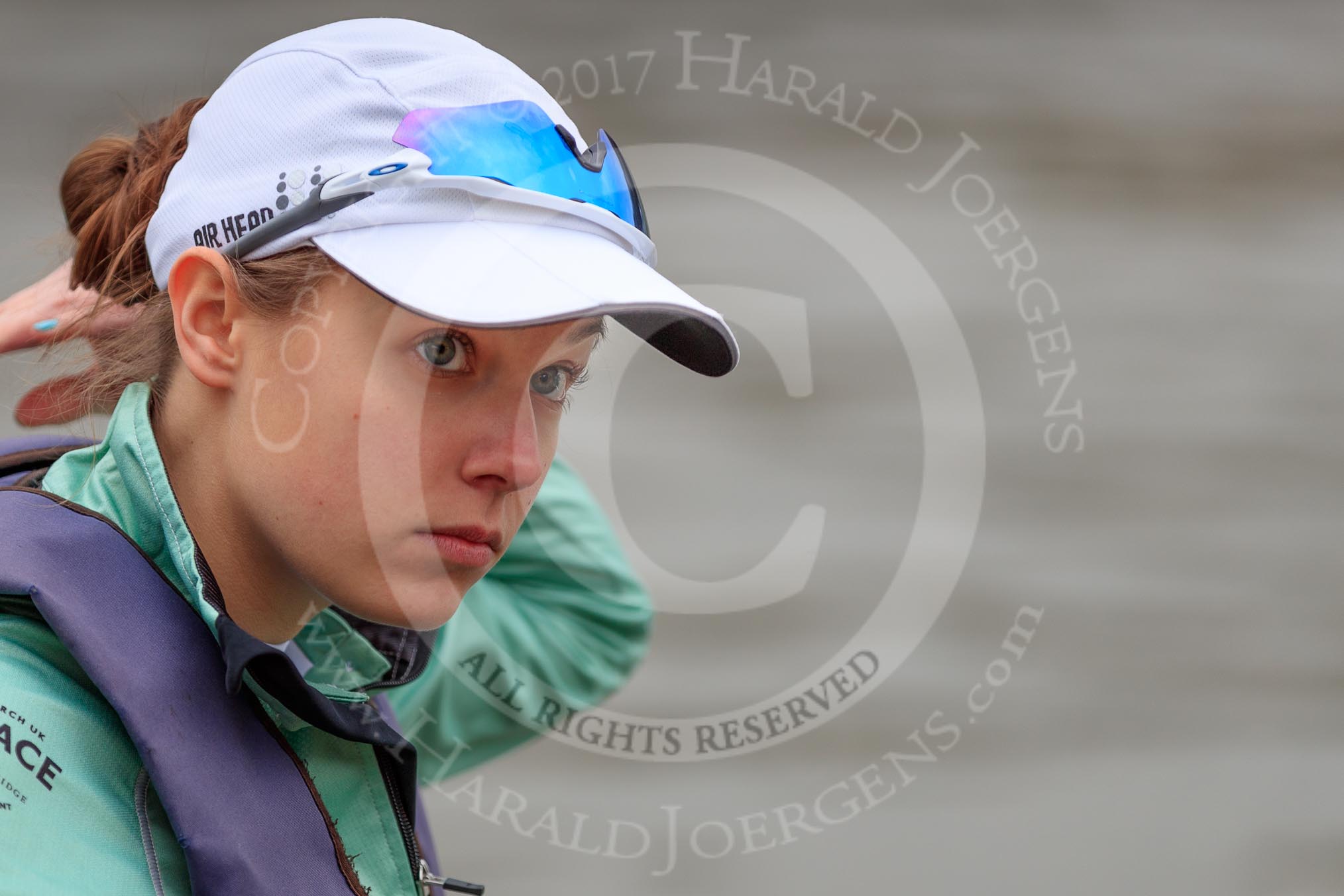 The Cancer Research UK Women's Boat Race 2018: Close-up of Sophie Shapter, cox for Cambridge.