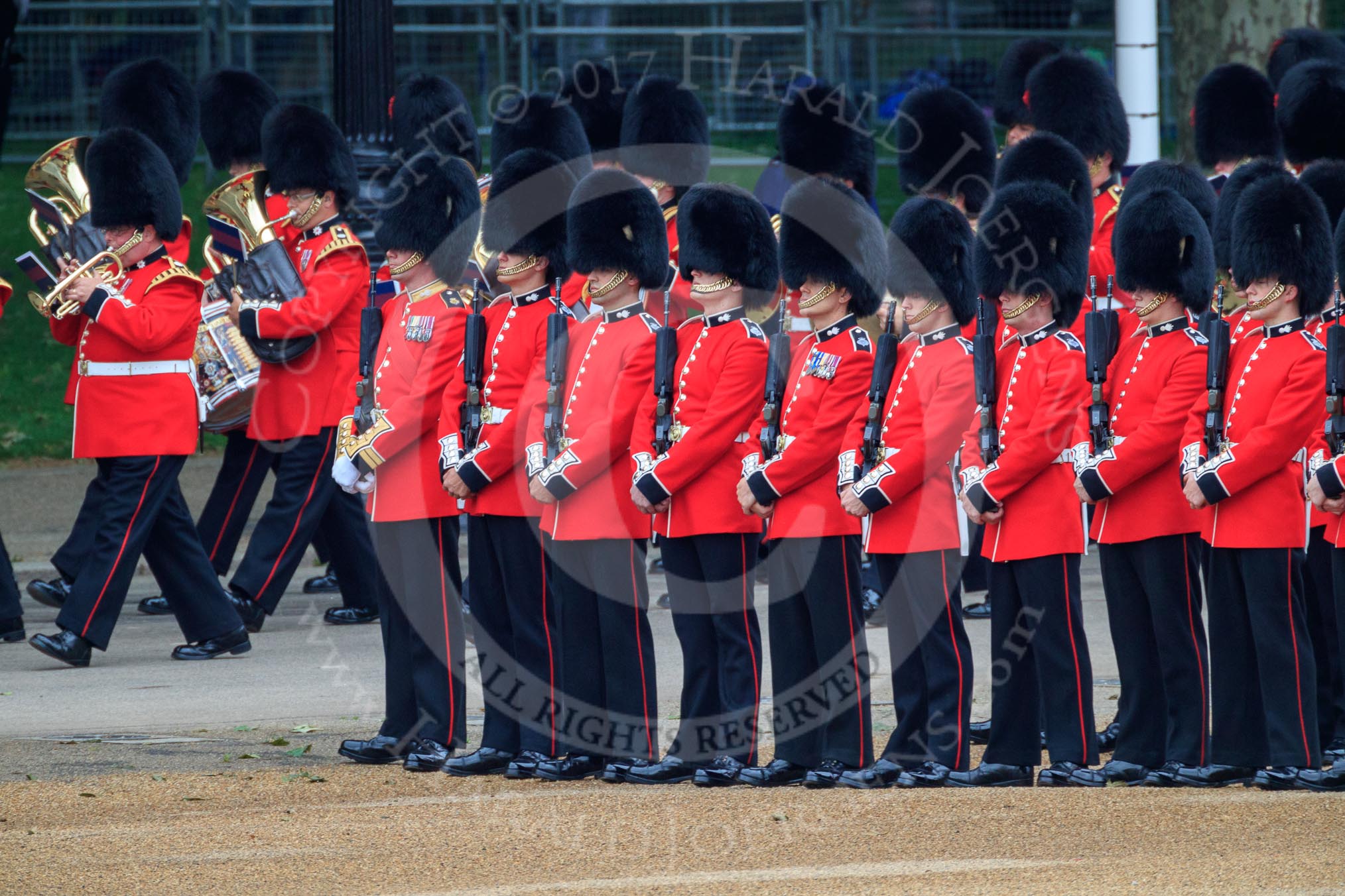 during The Colonel's Review {iptcyear4} (final rehearsal for Trooping the Colour, The Queen's Birthday Parade) at Horse Guards Parade, Westminster, London, 2 June 2018, 10:31.