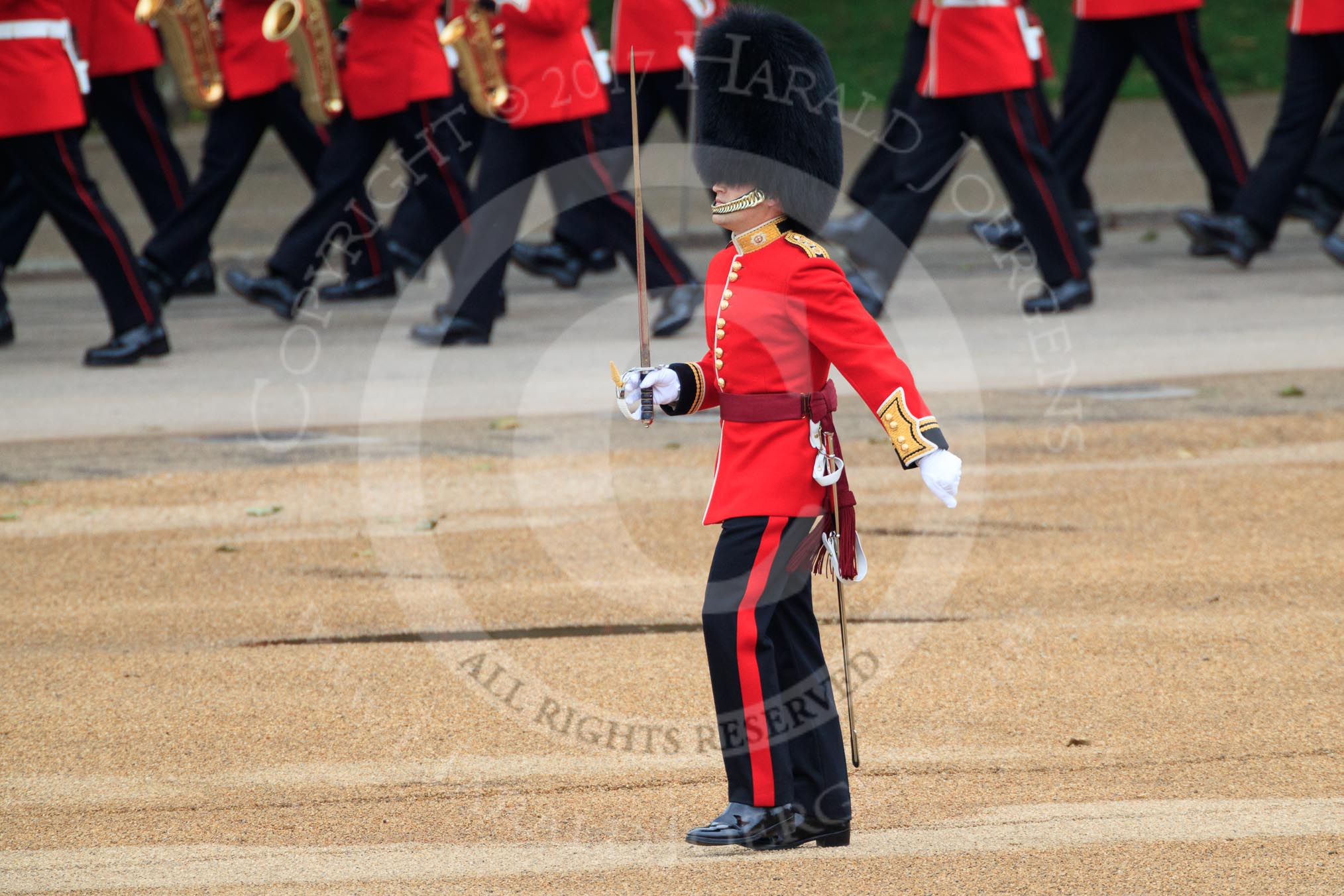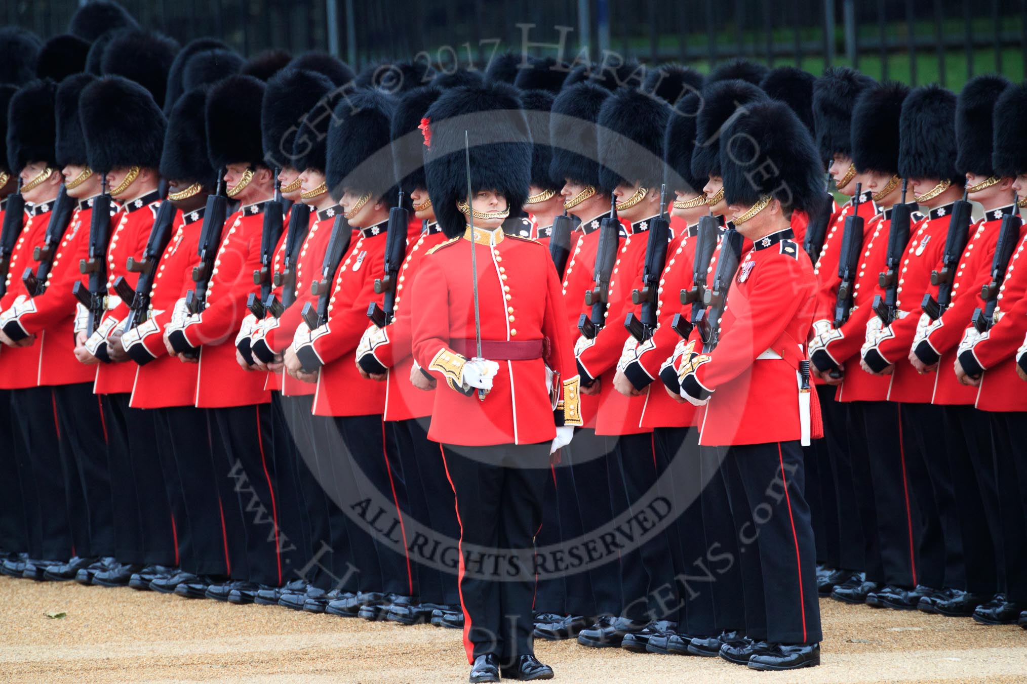 during The Colonel's Review {iptcyear4} (final rehearsal for Trooping the Colour, The Queen's Birthday Parade) at Horse Guards Parade, Westminster, London, 2 June 2018, 10:30.