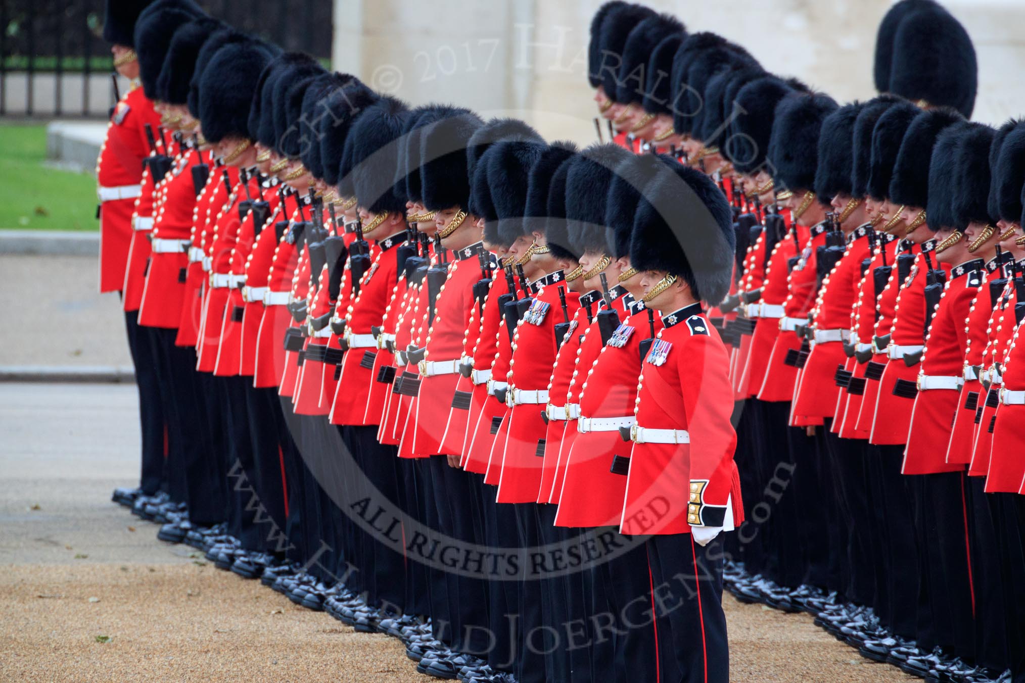 during The Colonel's Review {iptcyear4} (final rehearsal for Trooping the Colour, The Queen's Birthday Parade) at Horse Guards Parade, Westminster, London, 2 June 2018, 10:36.