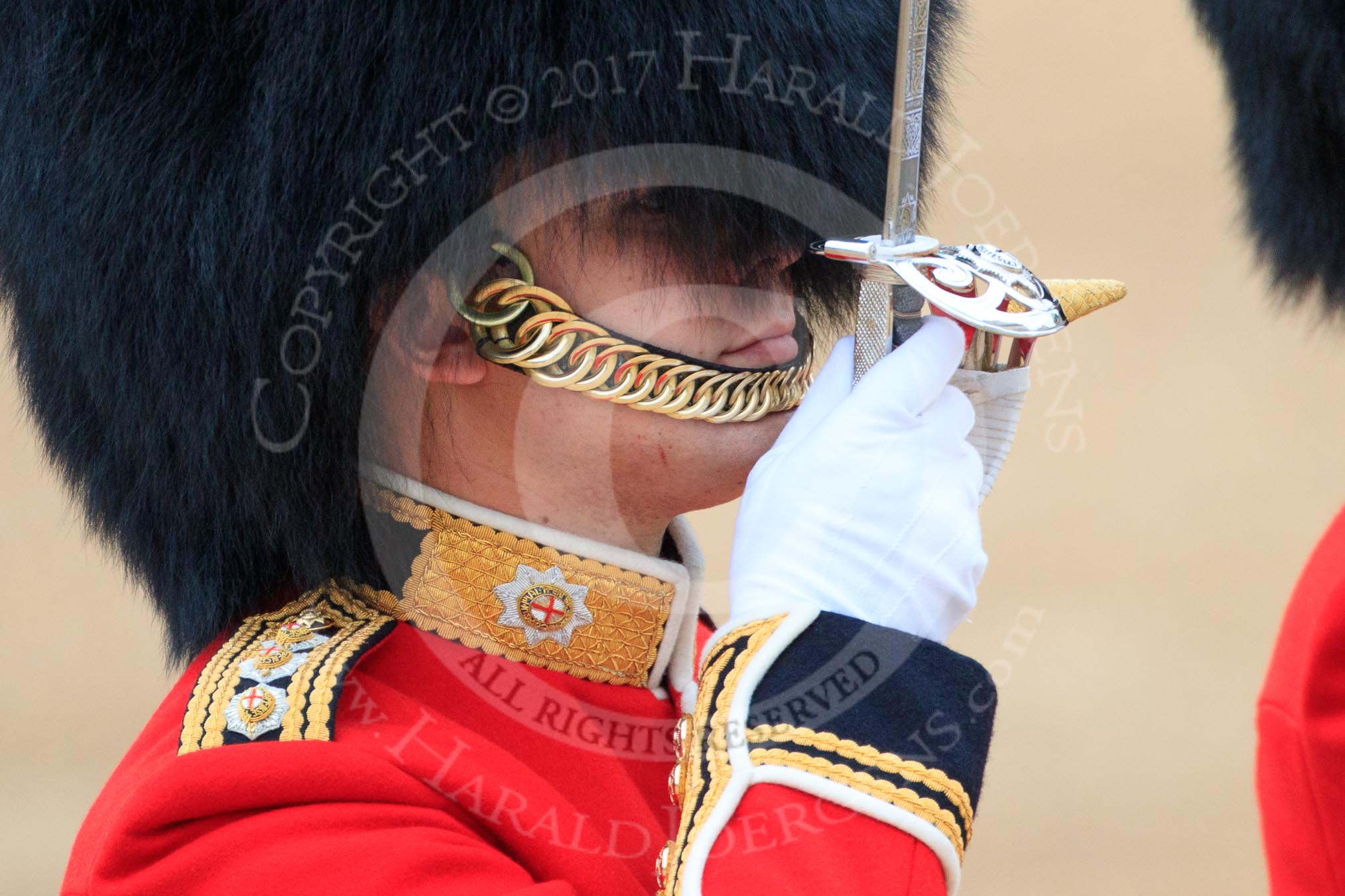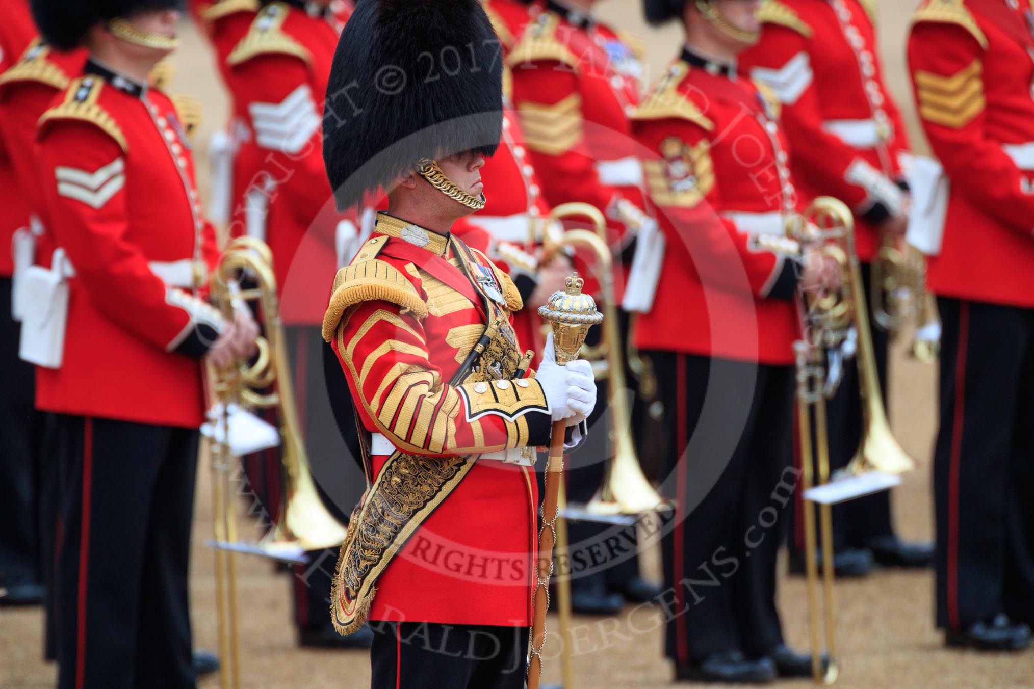 during The Colonel's Review {iptcyear4} (final rehearsal for Trooping the Colour, The Queen's Birthday Parade) at Horse Guards Parade, Westminster, London, 2 June 2018, 10:37.