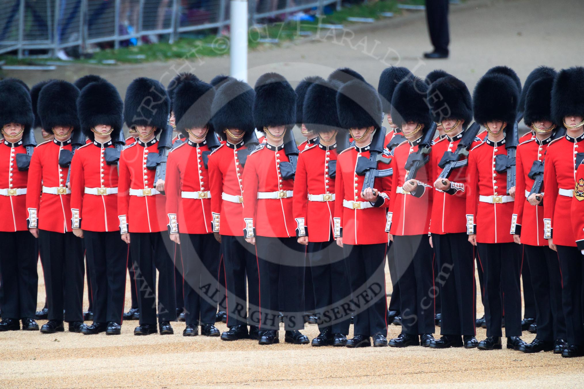 during The Colonel's Review {iptcyear4} (final rehearsal for Trooping the Colour, The Queen's Birthday Parade) at Horse Guards Parade, Westminster, London, 2 June 2018, 10:35.
