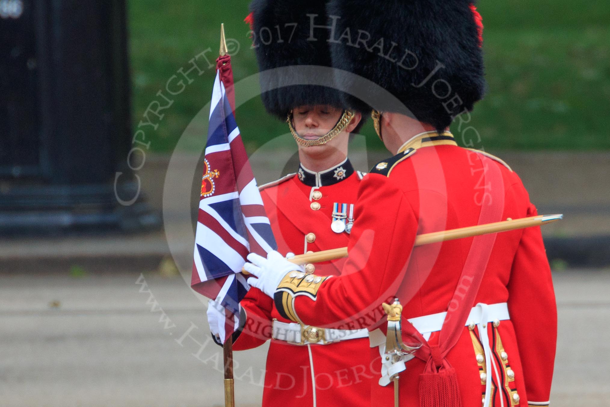during The Colonel's Review {iptcyear4} (final rehearsal for Trooping the Colour, The Queen's Birthday Parade) at Horse Guards Parade, Westminster, London, 2 June 2018, 10:18.