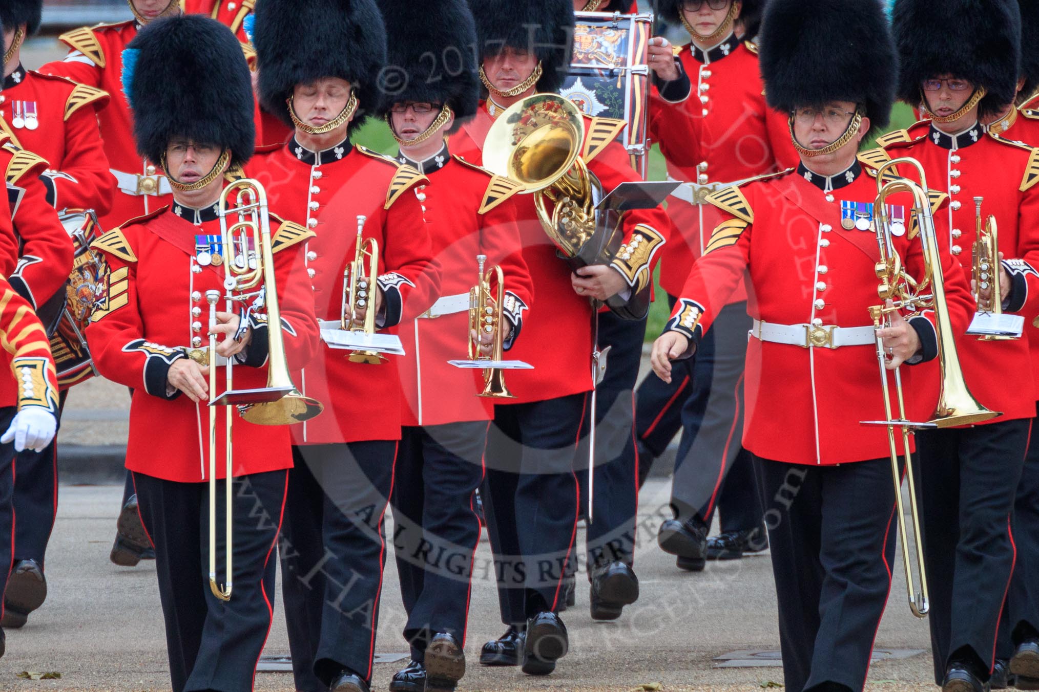 during The Colonel's Review {iptcyear4} (final rehearsal for Trooping the Colour, The Queen's Birthday Parade) at Horse Guards Parade, Westminster, London, 2 June 2018, 10:30.