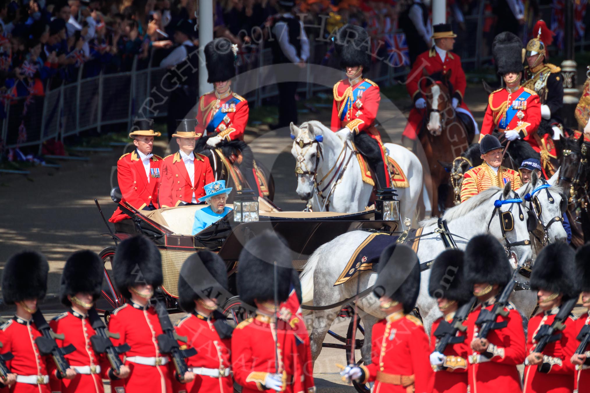 during Trooping the Colour {iptcyear4}, The Queen's Birthday Parade at Horse Guards Parade, Westminster, London, 9 June 2018, 10:58.
