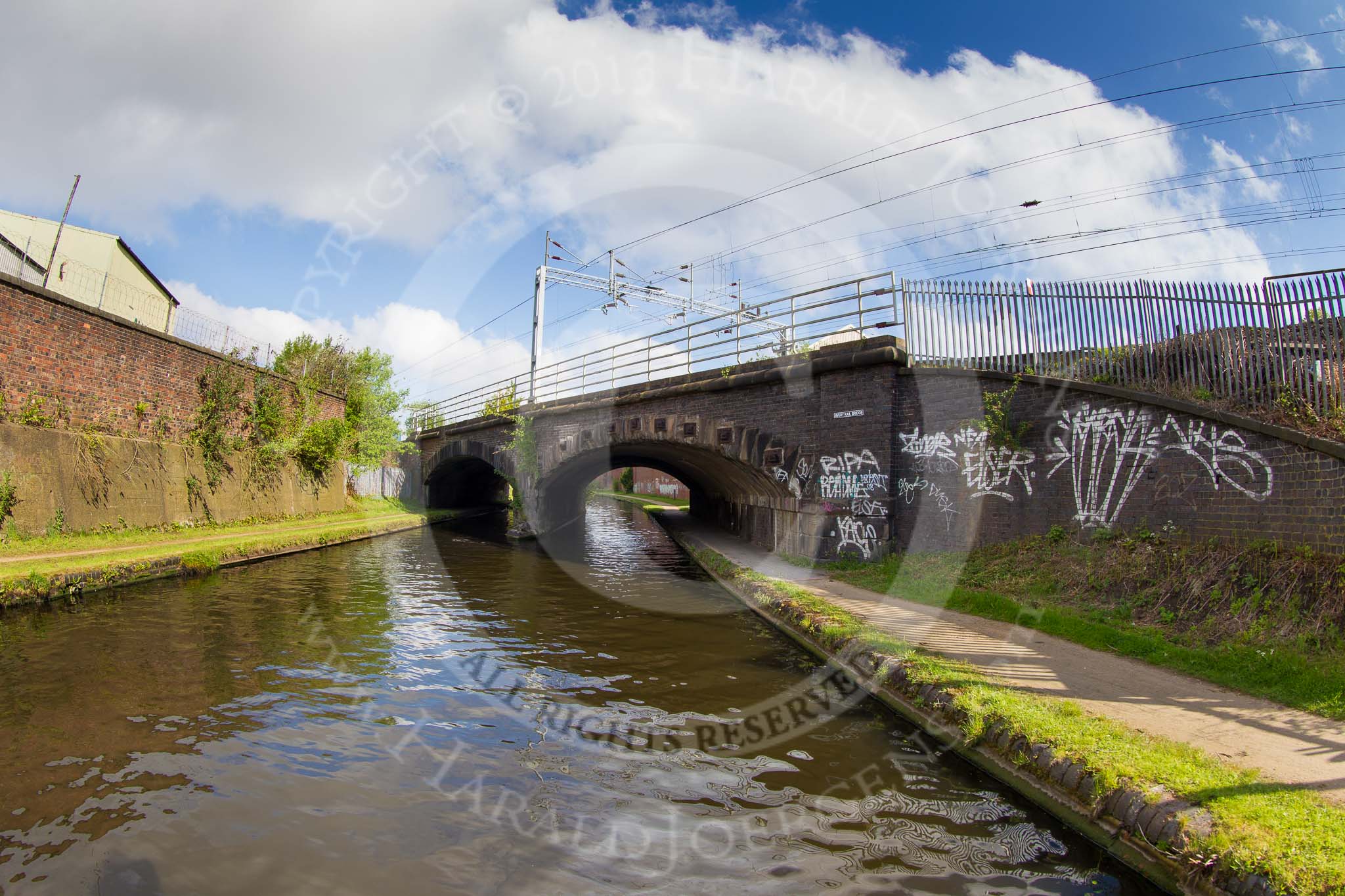 BCN Marathon Challenge 2013: Avery Rail Bridge at the BCN New Main Line, close to Avery's Basin. W & T Avery, the well known manufacturer of scales and weighing machines, had a factory at the site of the former Soho Foundry, closeby..