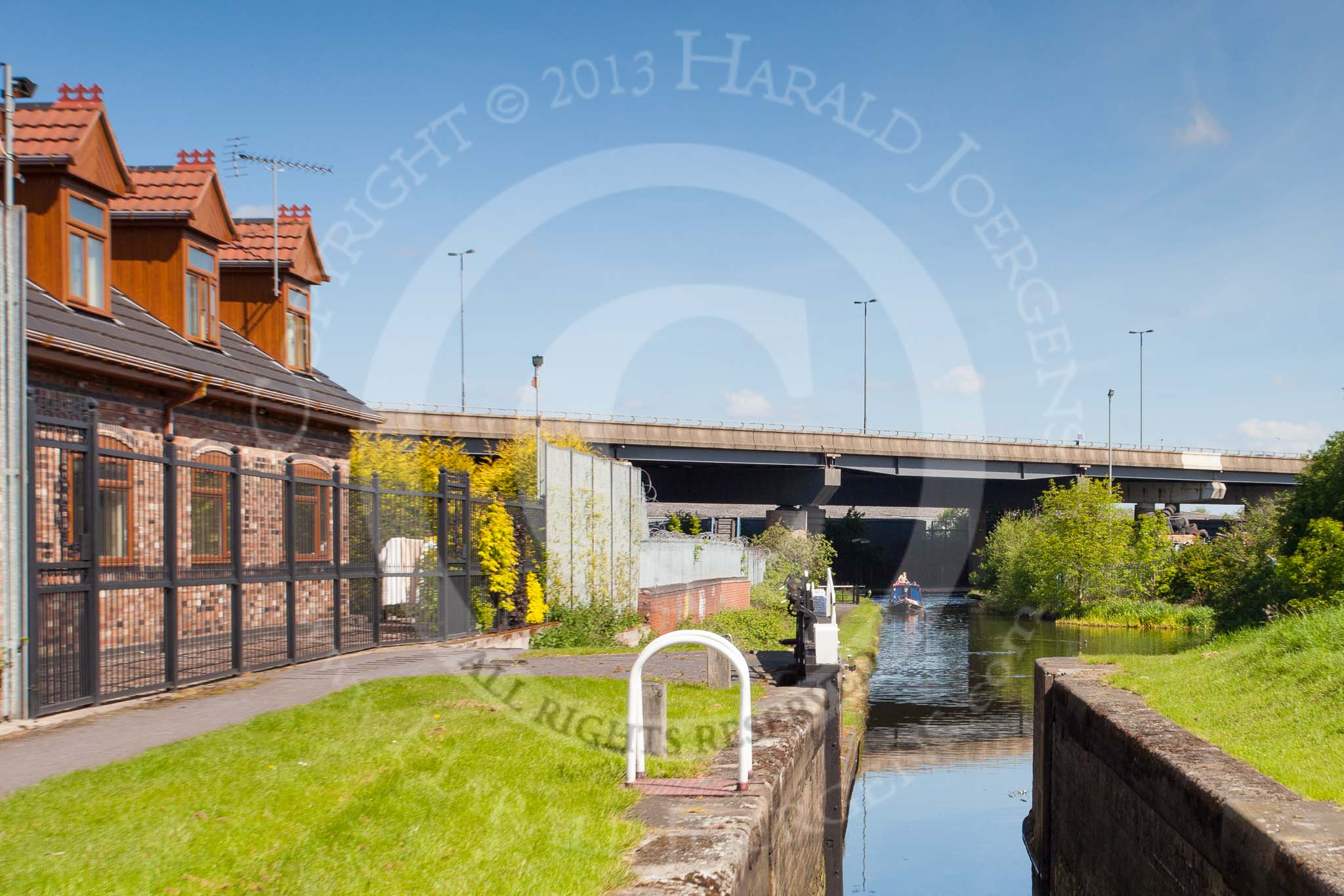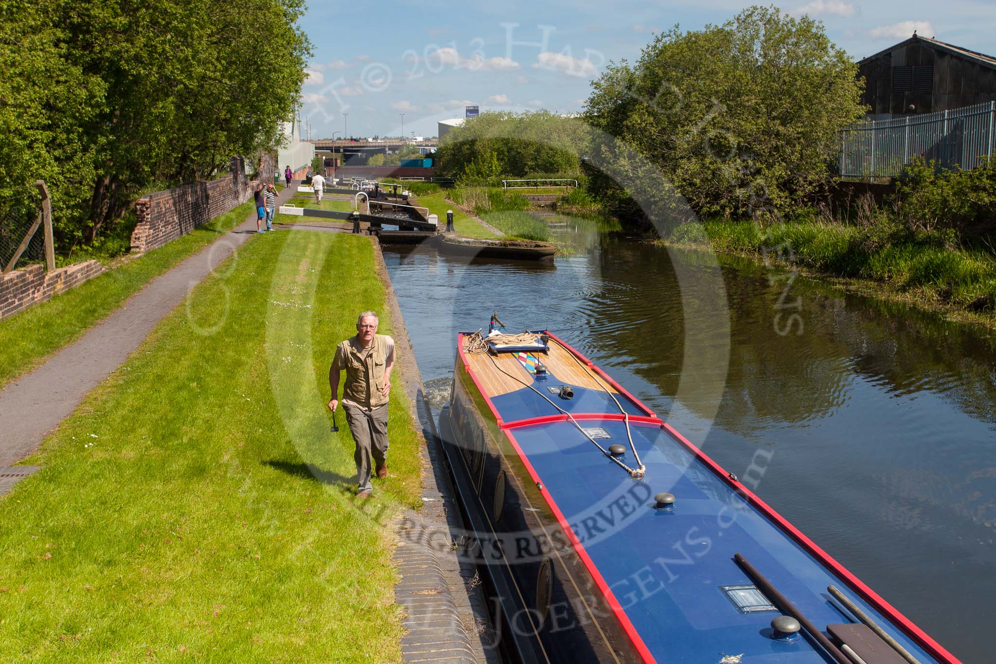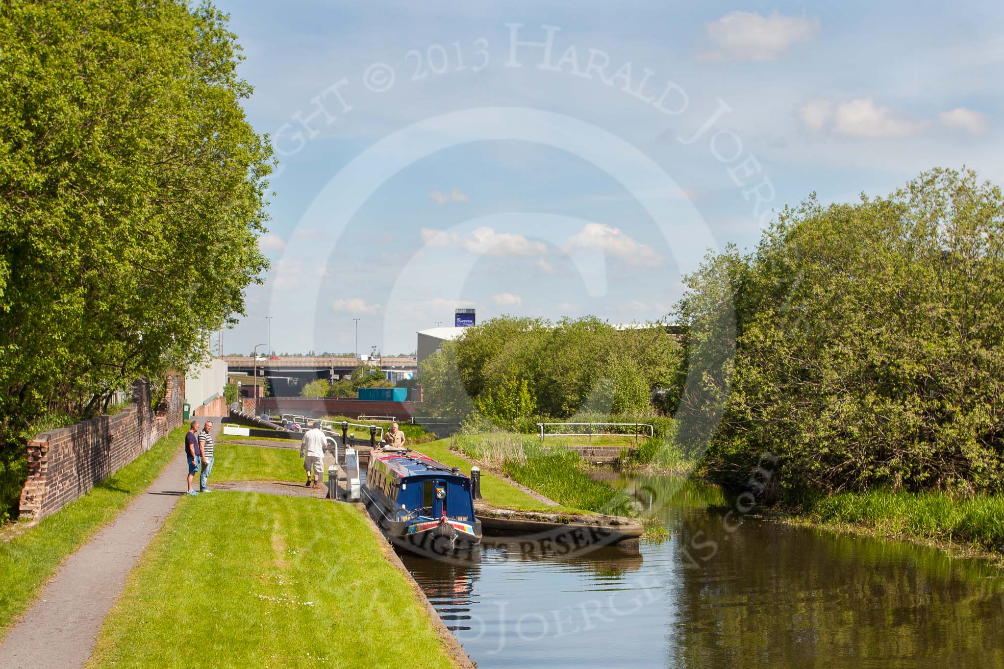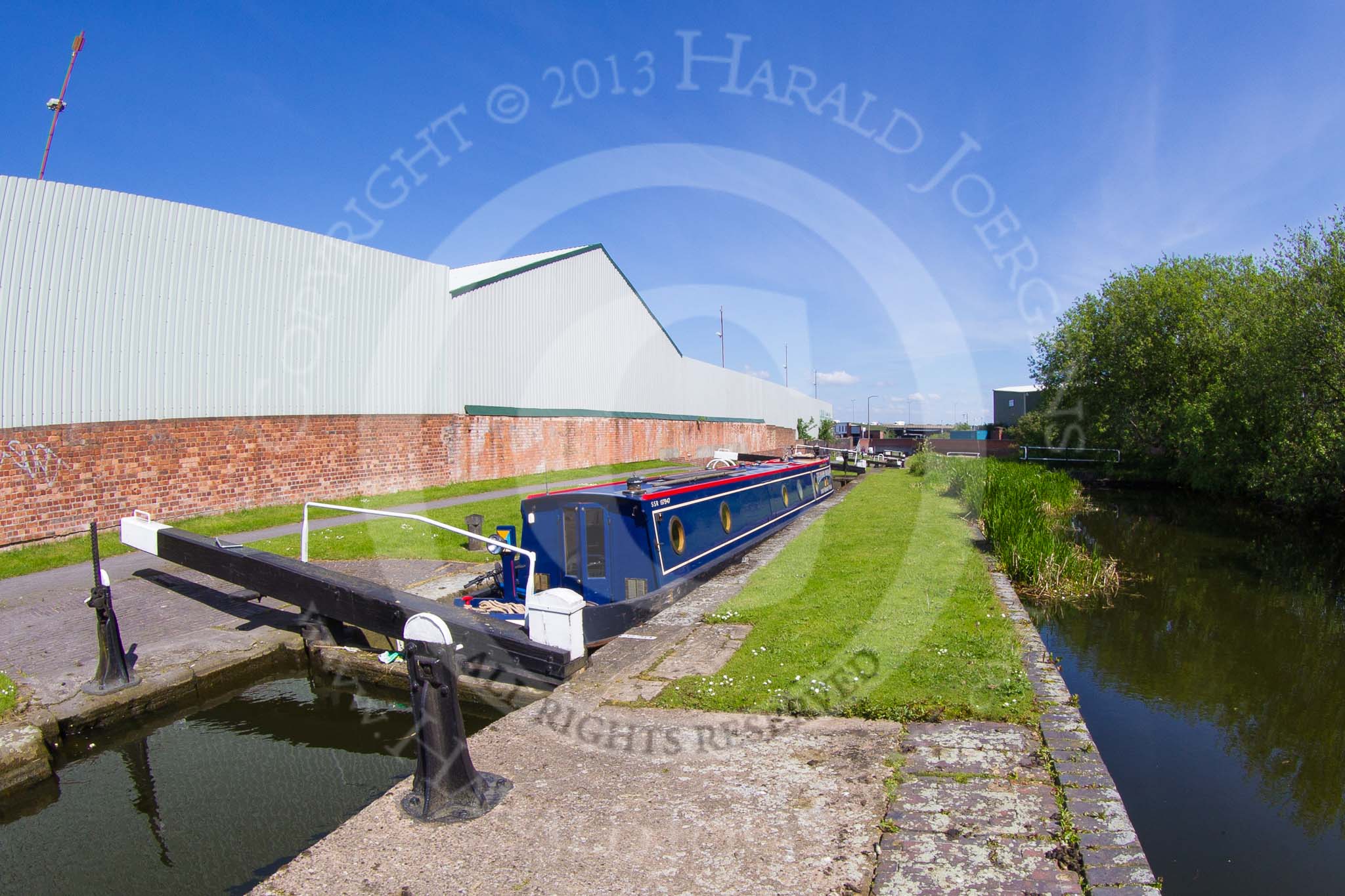 BCN Marathon Challenge 2013: The Titford canal - "Felonious Mongoose" arriving at Oldbury Bottom Lock. The basin once served Midland Tar Distiller Springfield works and was the main loading point for the Thomas Clayton "gas" boats.. Birmingham Canal Navigation, United Kingdom, on 25 May 2013 at 10:23, image #142