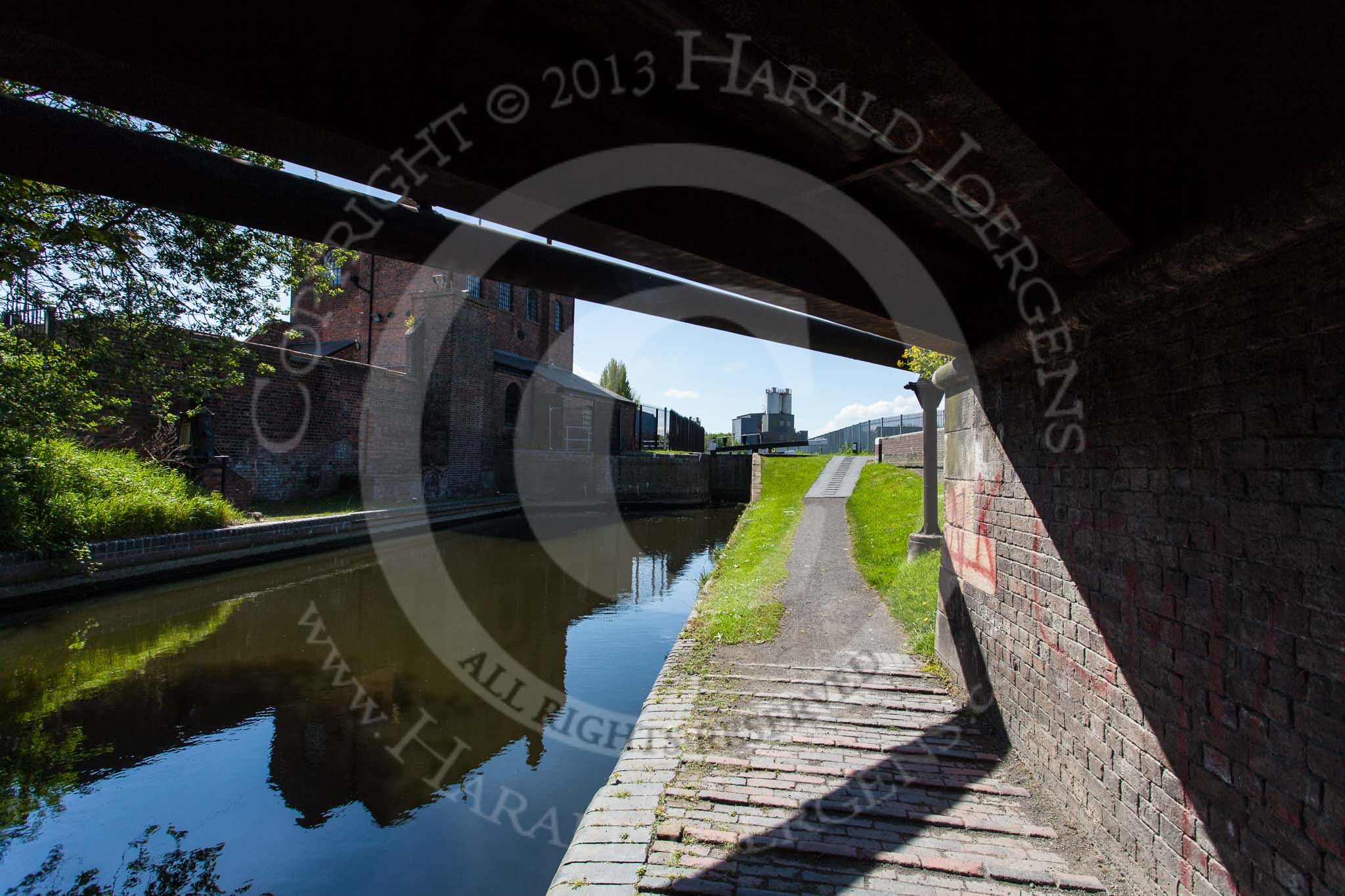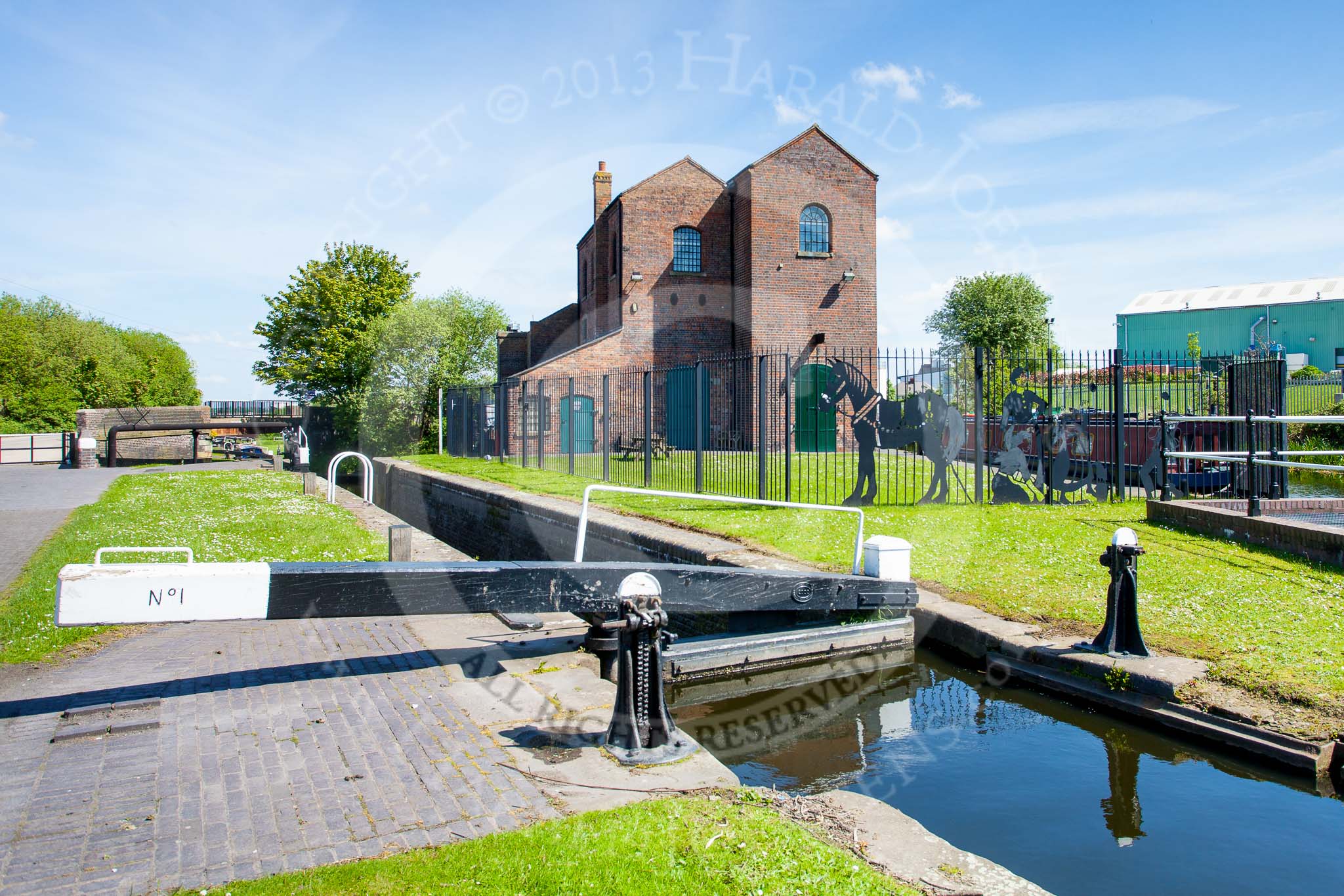 BCN Marathon Challenge 2013: The Titford Canal - the Pump House and Oldbury Top Lock seen from the towpath under Engine Street Bridge.. Birmingham Canal Navigation, United Kingdom, on 25 May 2013 at 10:51, image #148
