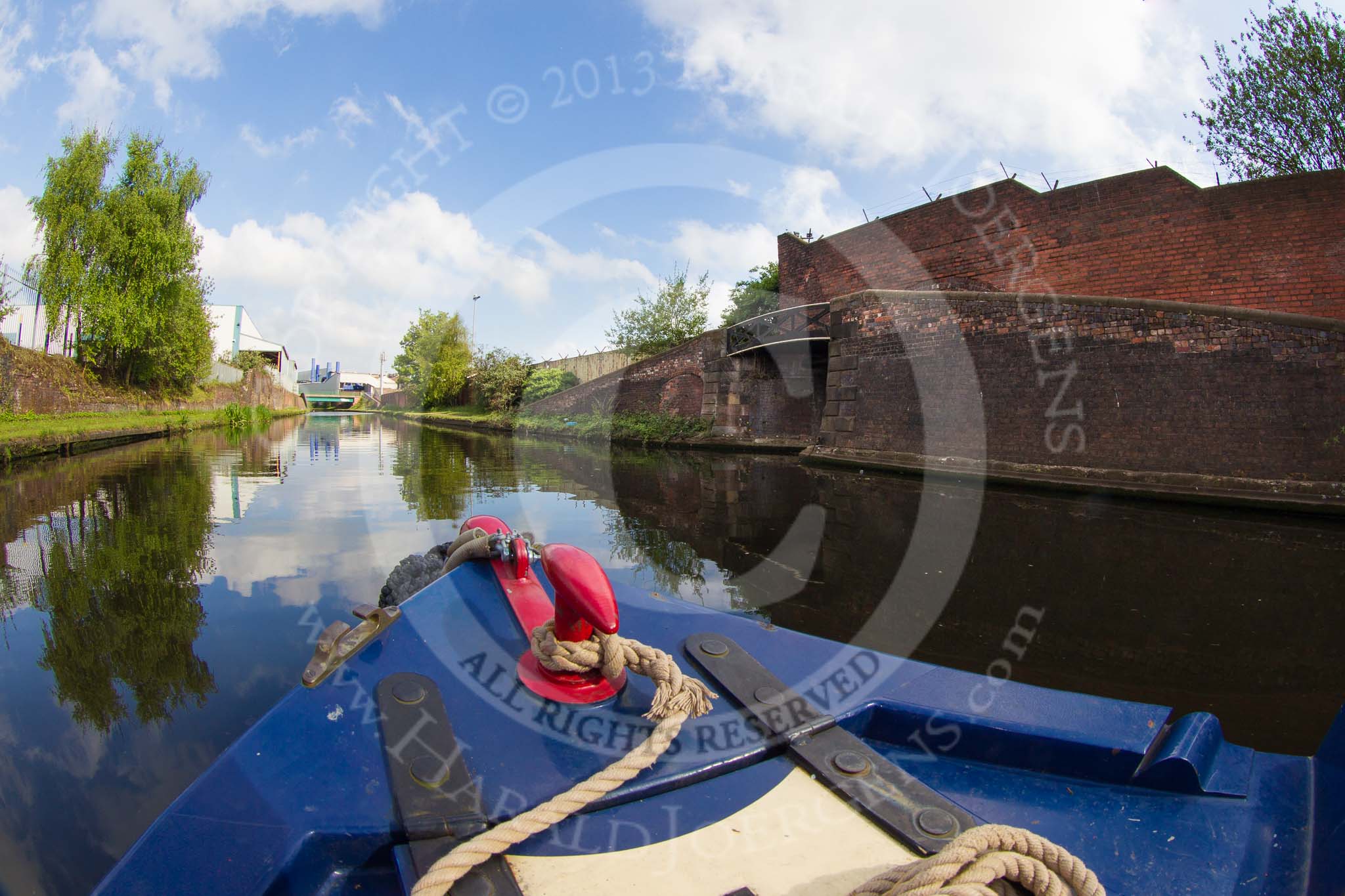 BCN Marathon Challenge 2013: Fish Eye view of Rabone Lane Bridge, BCN New Main Line. The modern bridge carries the B4136 over the canal.. Birmingham Canal Navigation, United Kingdom, on 25 May 2013 at 08:50, image #83
